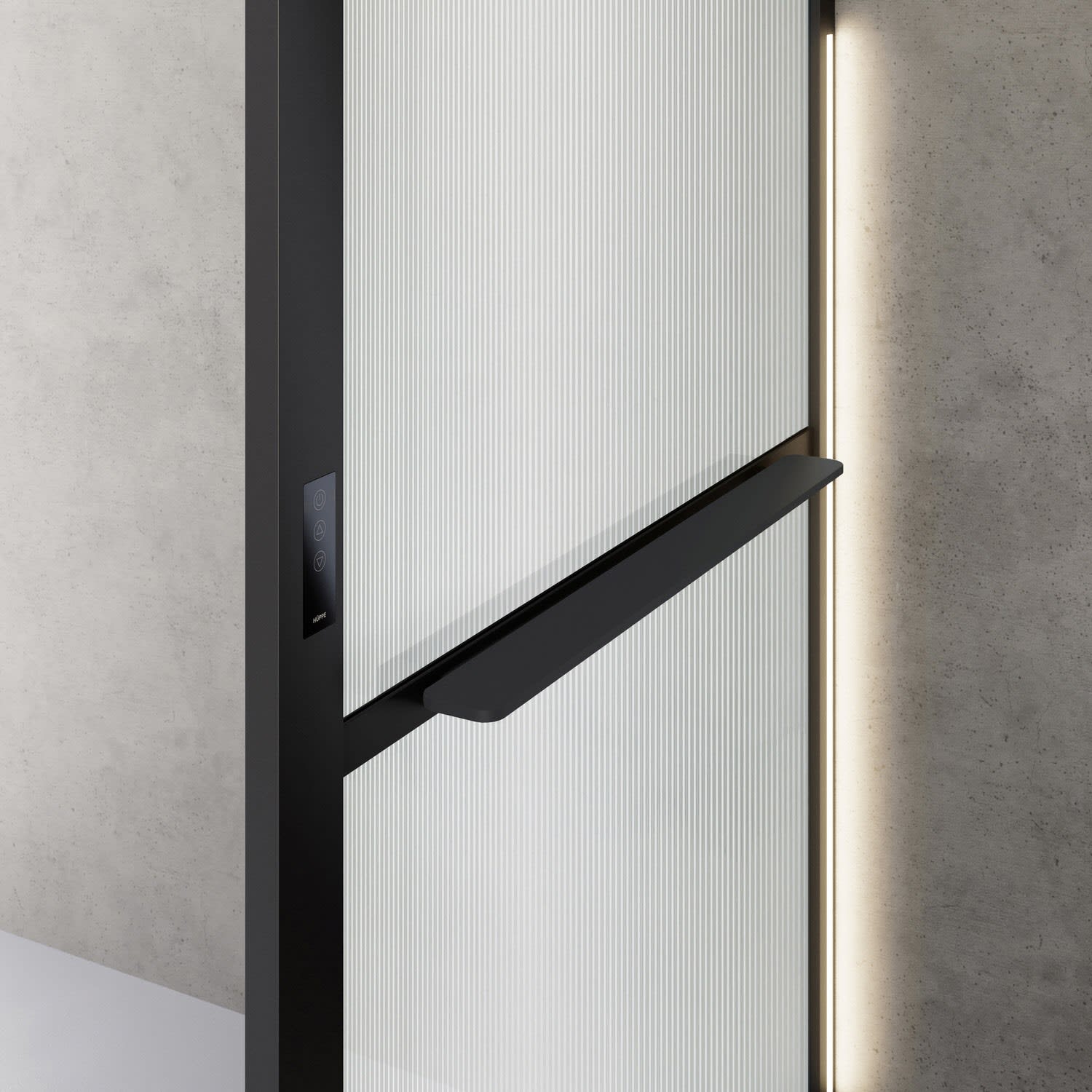 - innen integriertes Tablet aus HÜPPE Solid Surface in mattschwarz