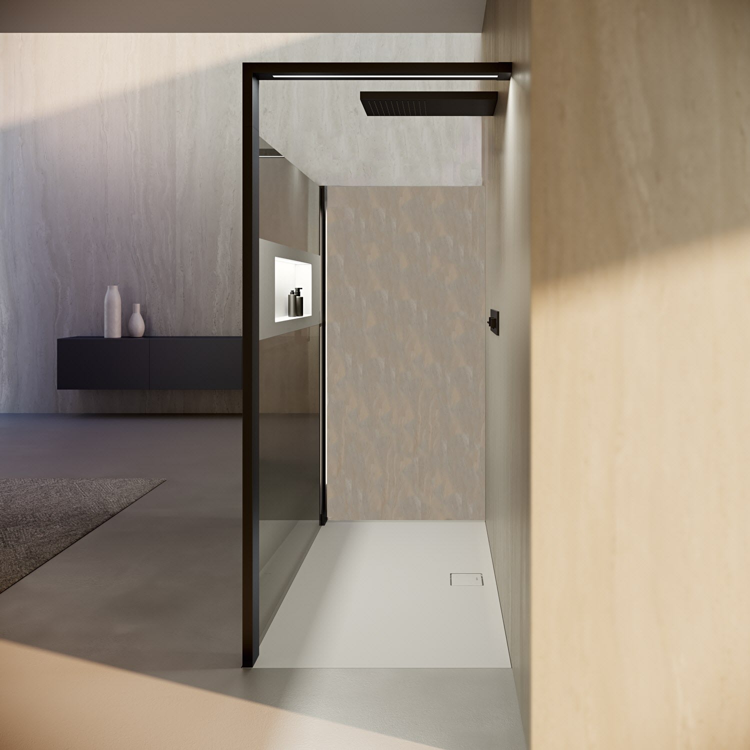 HÜPPE Sphere. Die neue Material-Kombination aus Mineralwerkstoff, Glas und Aluminium schafft im Zusammenspiel mit dem klaren, geradlinigen Design eine Ästhetik von zeitloser Eleganz, die das Bad zu einem dauerhaft attraktiven Wohnraum macht. Haptisch angenehme Oberflächen und der Einsatz von Licht kreieren ein einladendes Ambiente - der Duschplatz wird zu einem Lieblingsort mit hoher Aufenthaltsqualität. Komfortable Funktionen wie Licht, Heizung, Möbel und praktische Ablagesysteme runden den Duschgenuss ab.