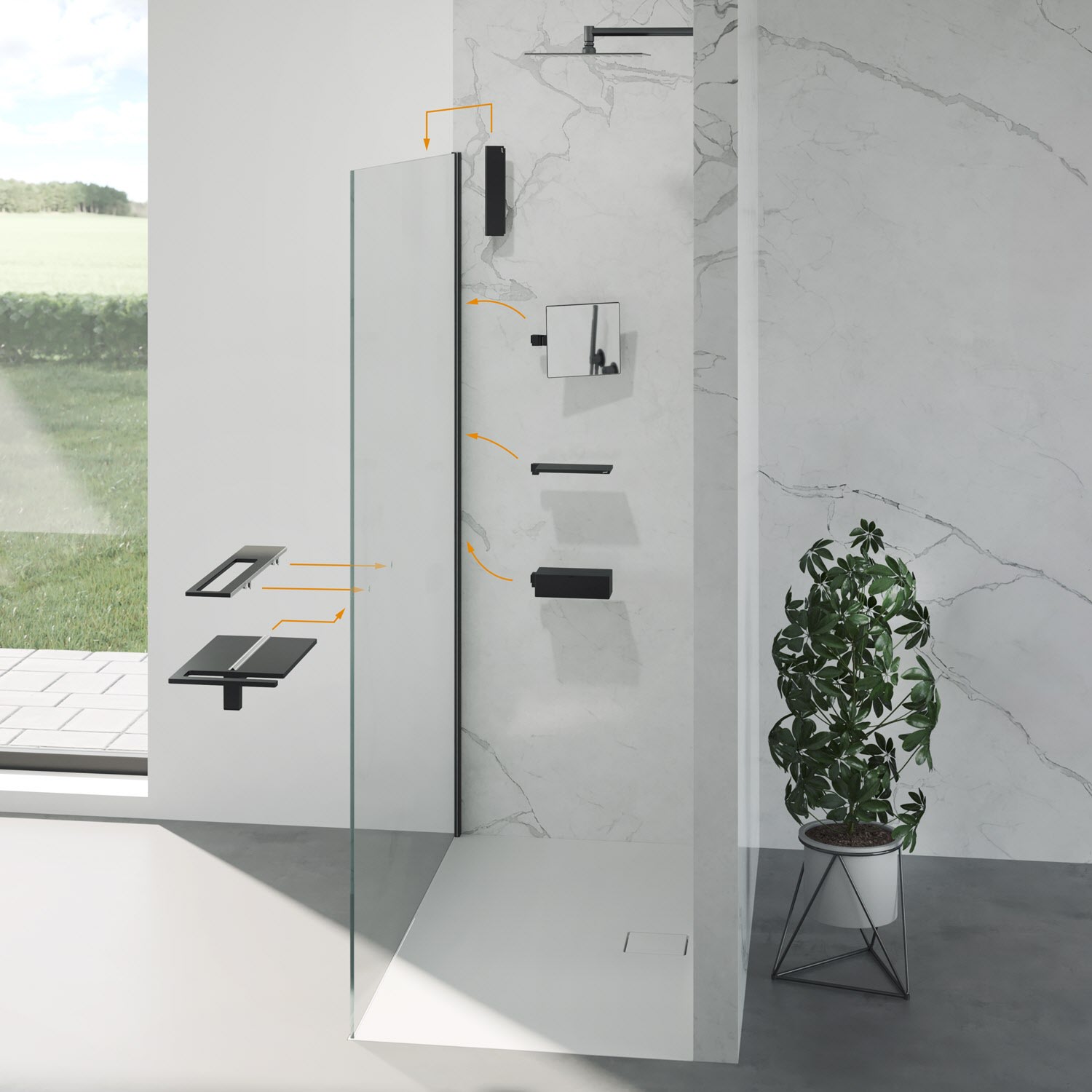 - Teilgerahmte Walk-In-Dusche