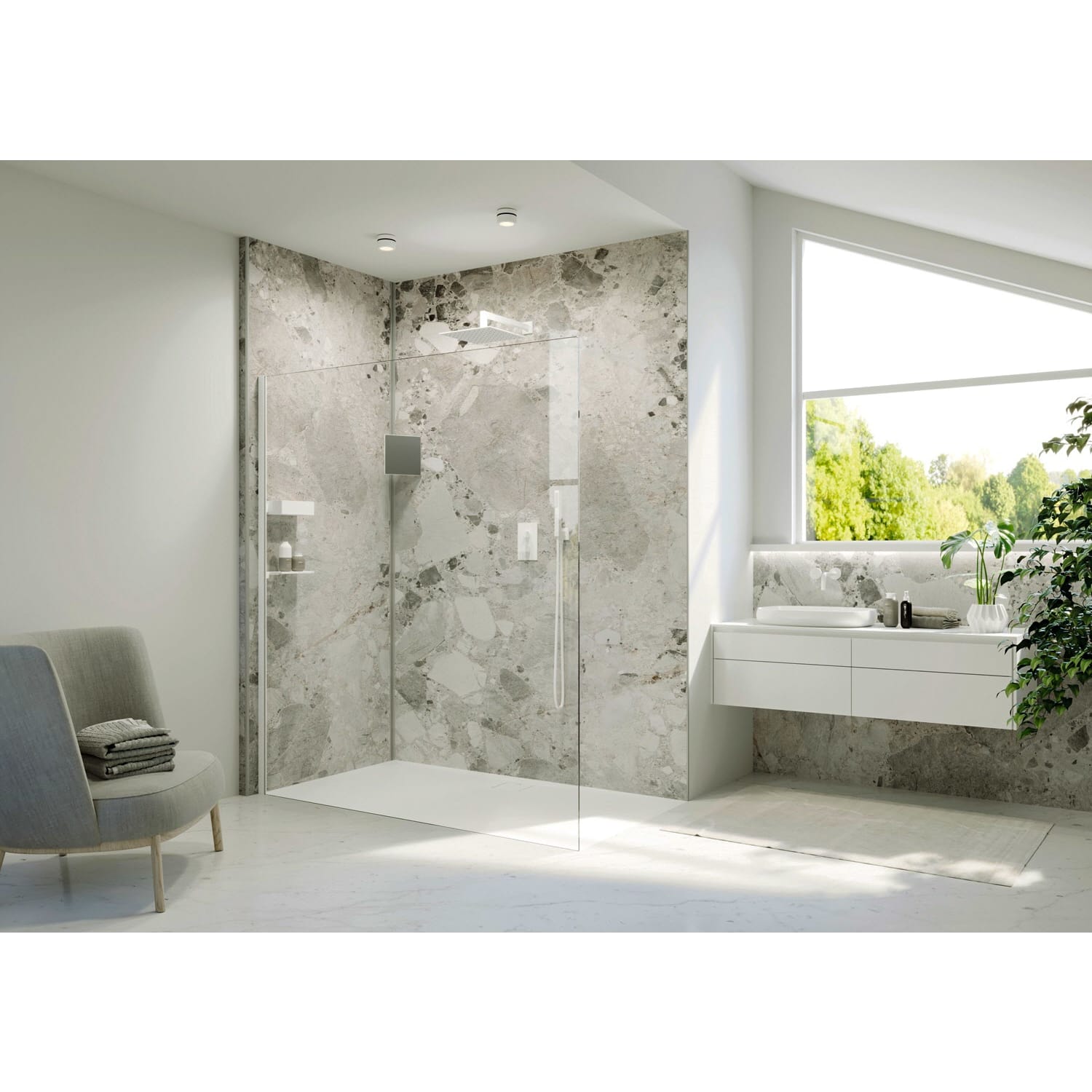 - Teilgerahmte Walk-In-Dusche