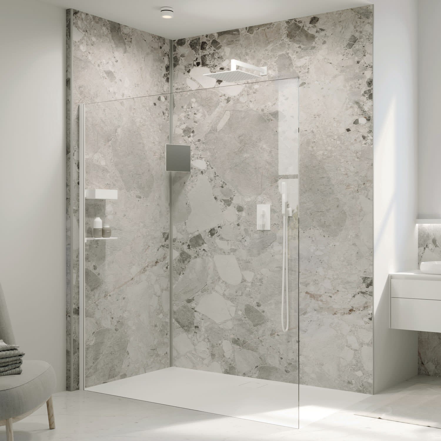 - Teilgerahmte Walk-In-Dusche