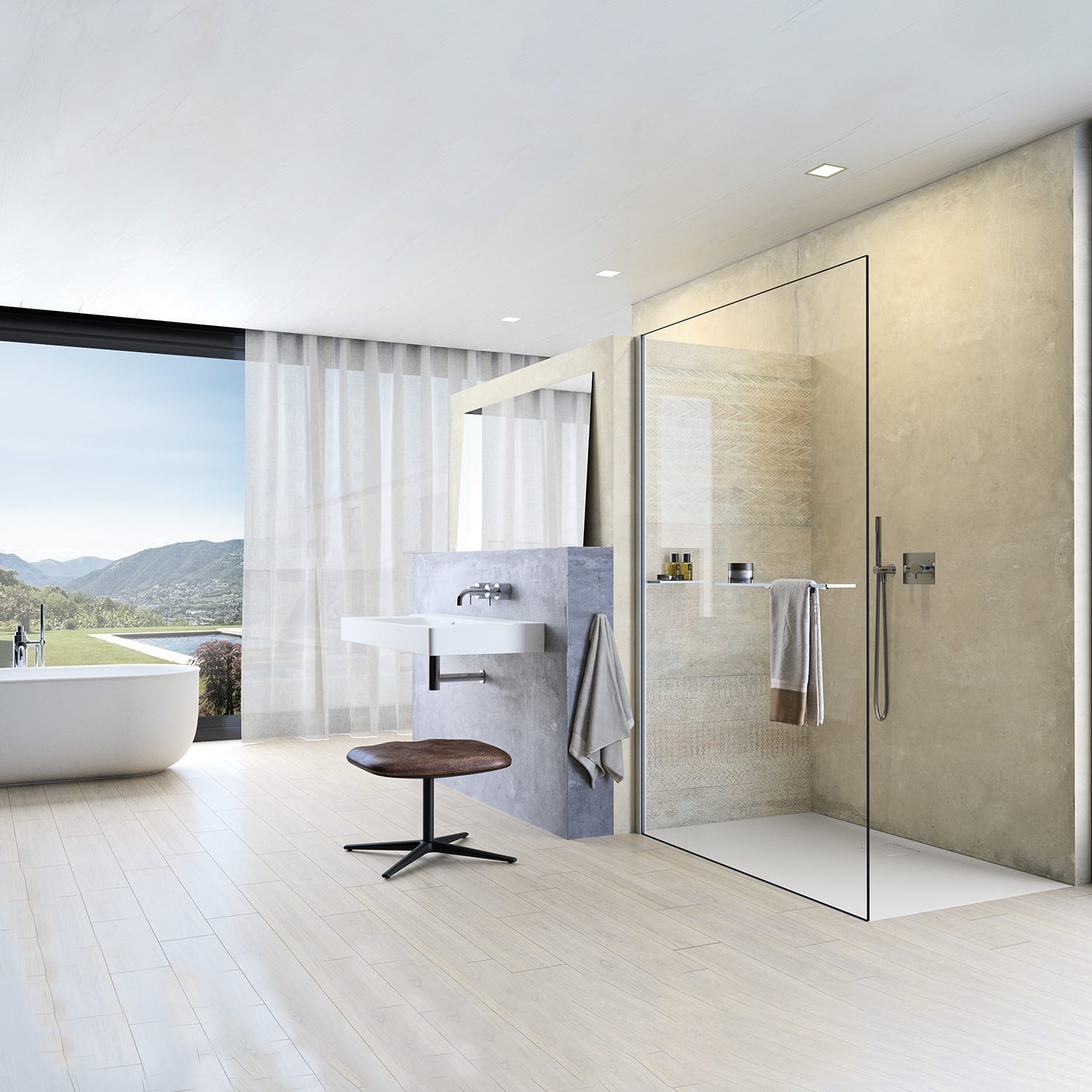 - alleinstehend zum Einbau auf Duschwanne oder direkt auf den Fliesenboden