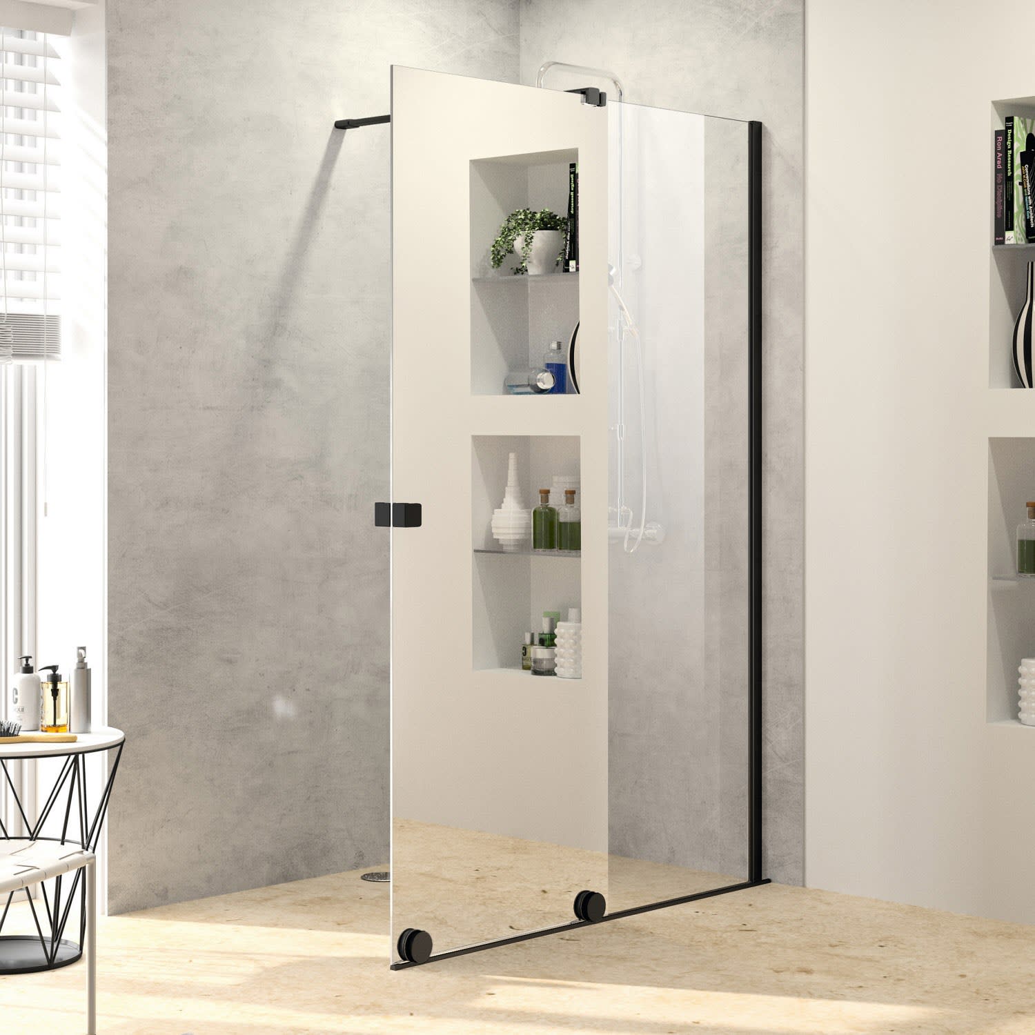 - teilgerahmte Walk-In mit einem Gleittürsegment, nach einer Seite öffnend, mit einem teilgerahmten festen Segment