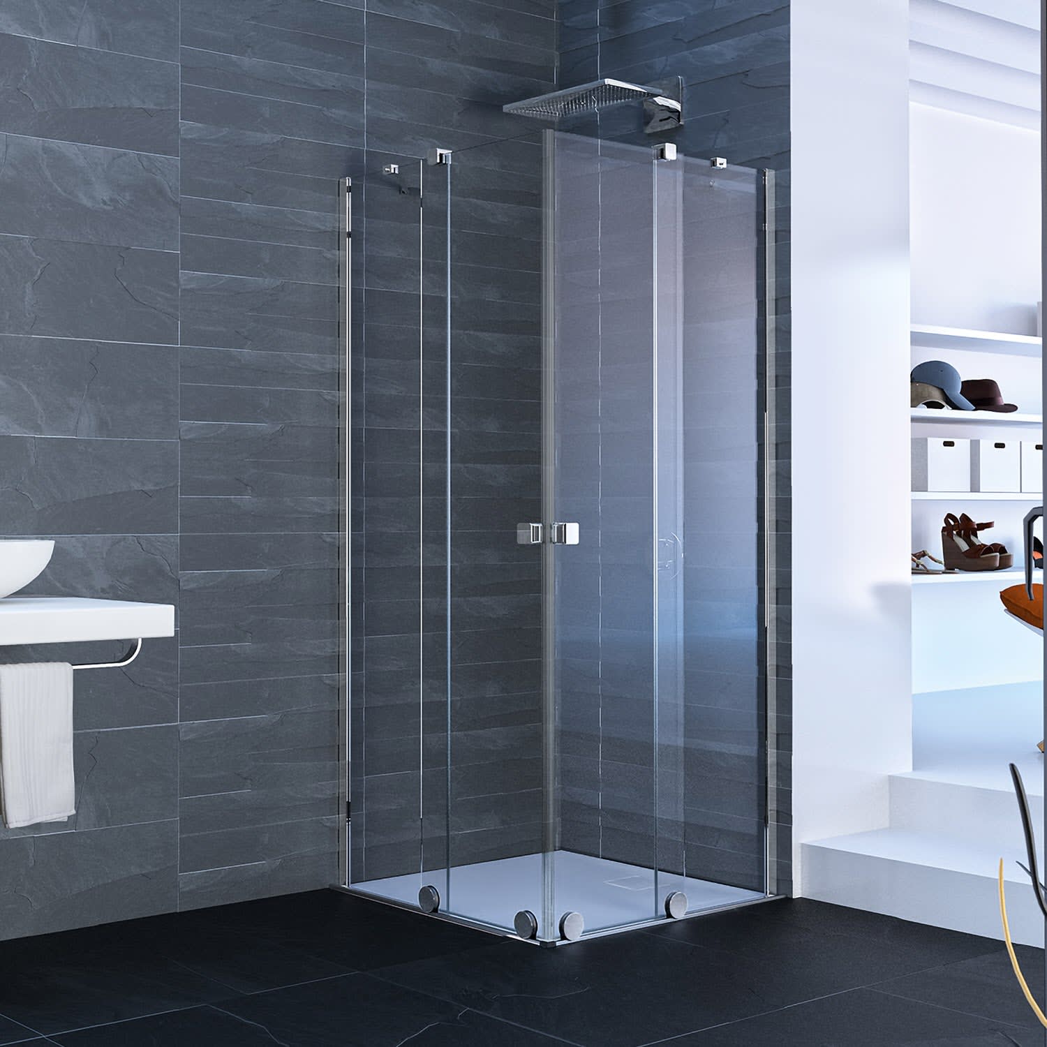 - Installation auf Fliesenoberflächen und Duschwannen ist möglich (Maßangaben s. Downloads & Zusatzinformationen)