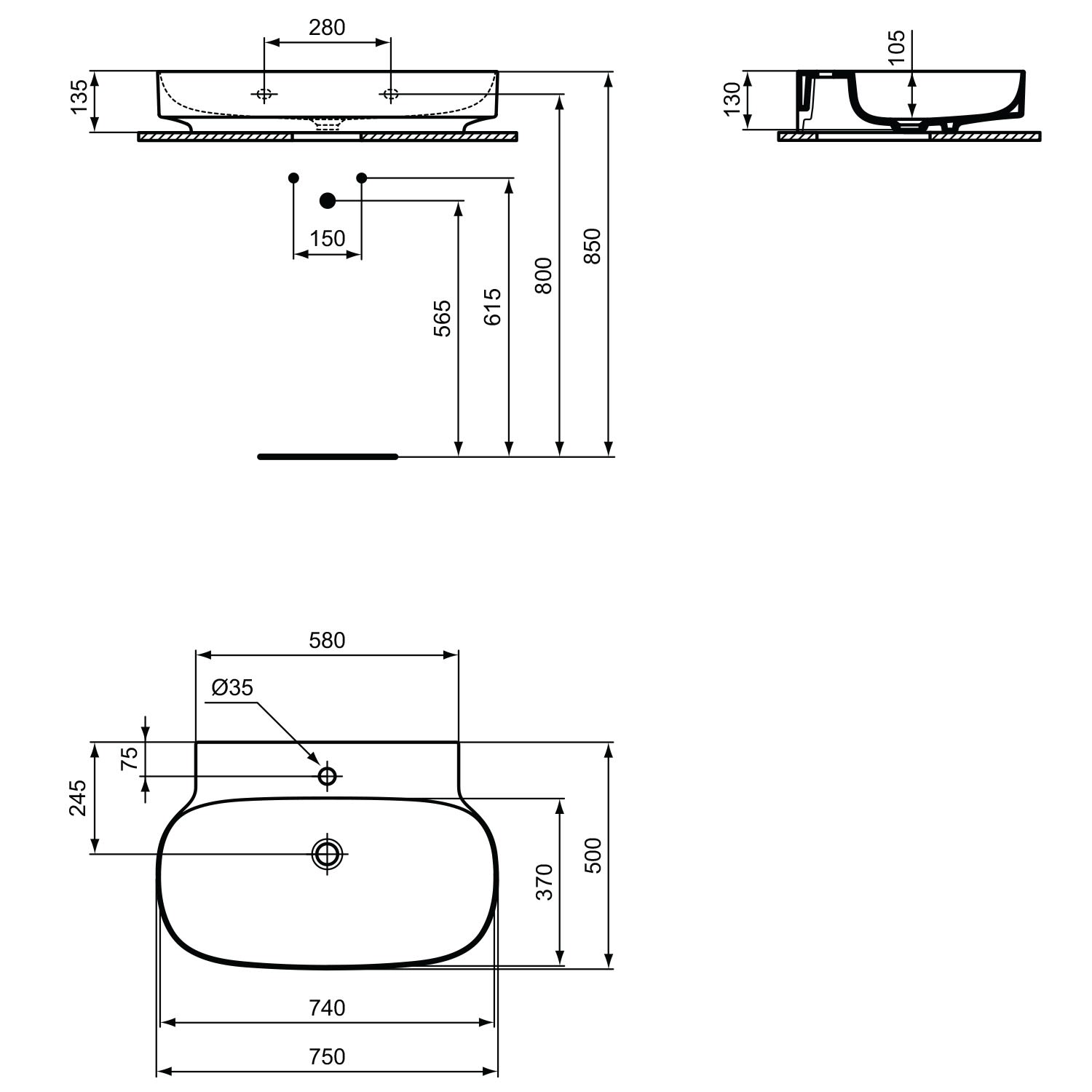 Ideal Standard Linda-X Waschtisch 75 cm, 1 Hahnloch, ohne Überlauf