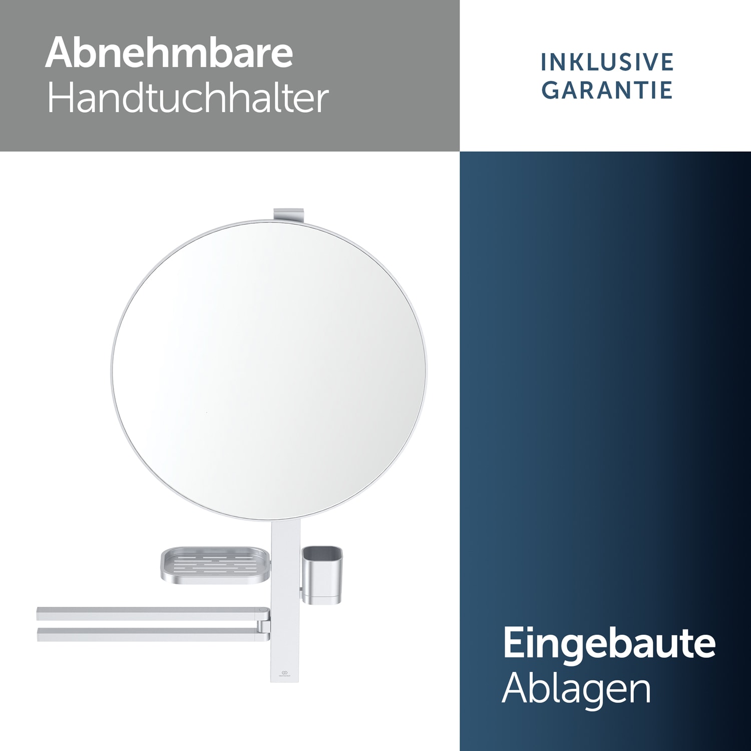 Ideal Standard Alu+ Beauty Bar Accessoires-Kombination L800 mit Spiegel Ø 50 cm