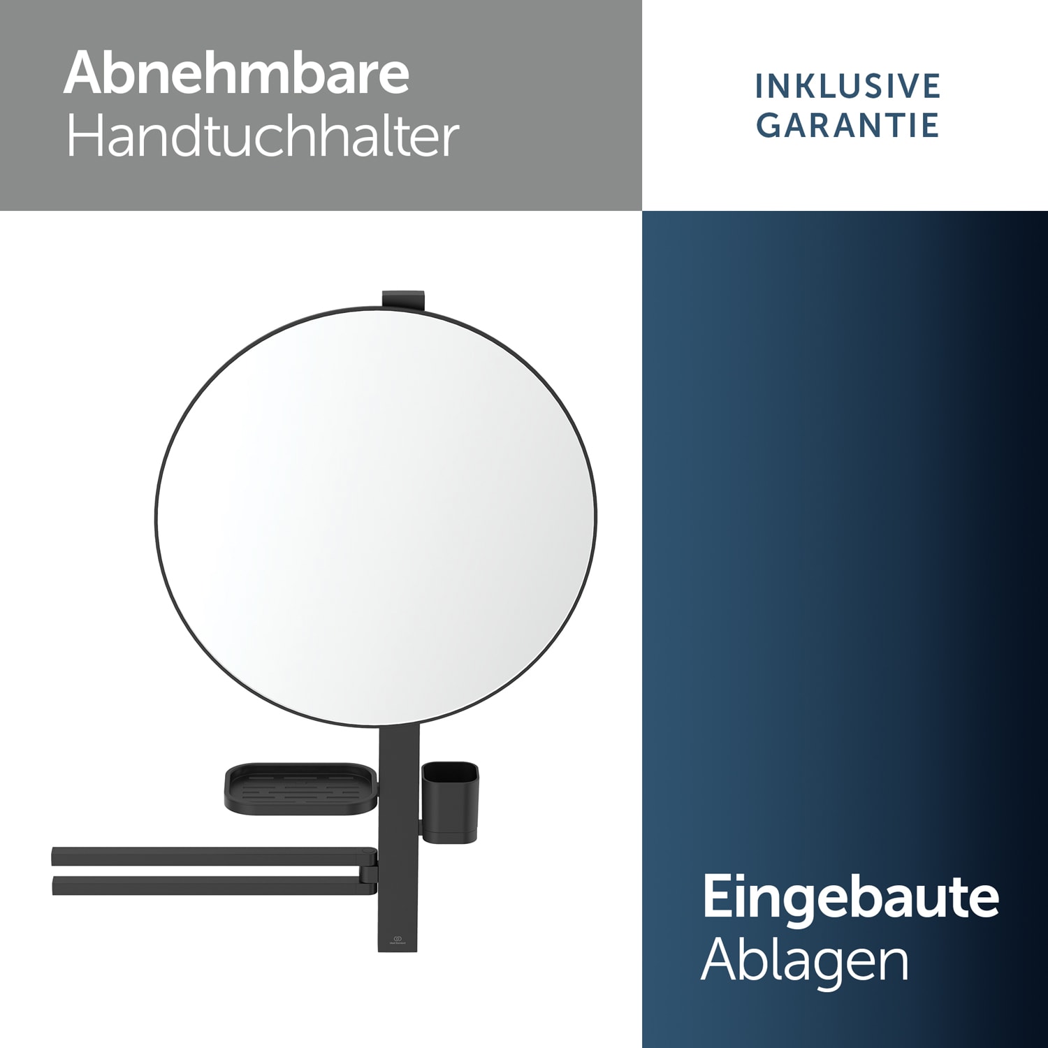 Ideal Standard Alu+ Beauty Bar Accessoires-Kombination L800 mit Spiegel Ø 50 cm