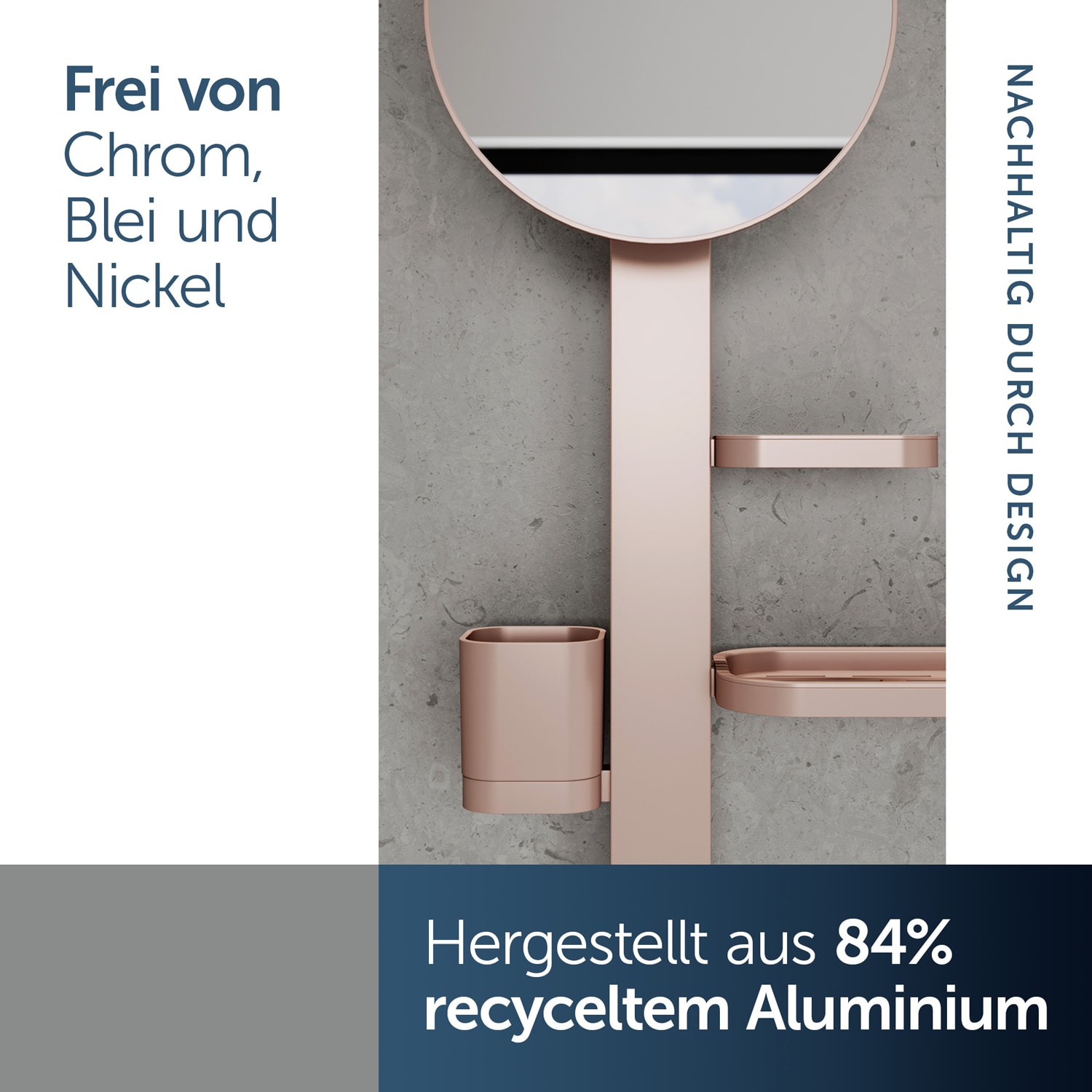 Die Alu+ Beauty Bar (Accessoires-Kombination S) von Ideal Standard ist nachhaltig, da es aus 84 % recyceltem Aluminium hergestellt wird und 100 % recycelbar ist. Die Verwendung von recyceltem Aluminium reduziert den Ressourcenverbrauch und minimiert Abfall. Sie ist frei von Chrom, Blei und Nickel. Die Alu+ Beauty Bar ist Teil eines nachhaltigen Ansatzes für die Badgestaltung, der die Umwelt schont.