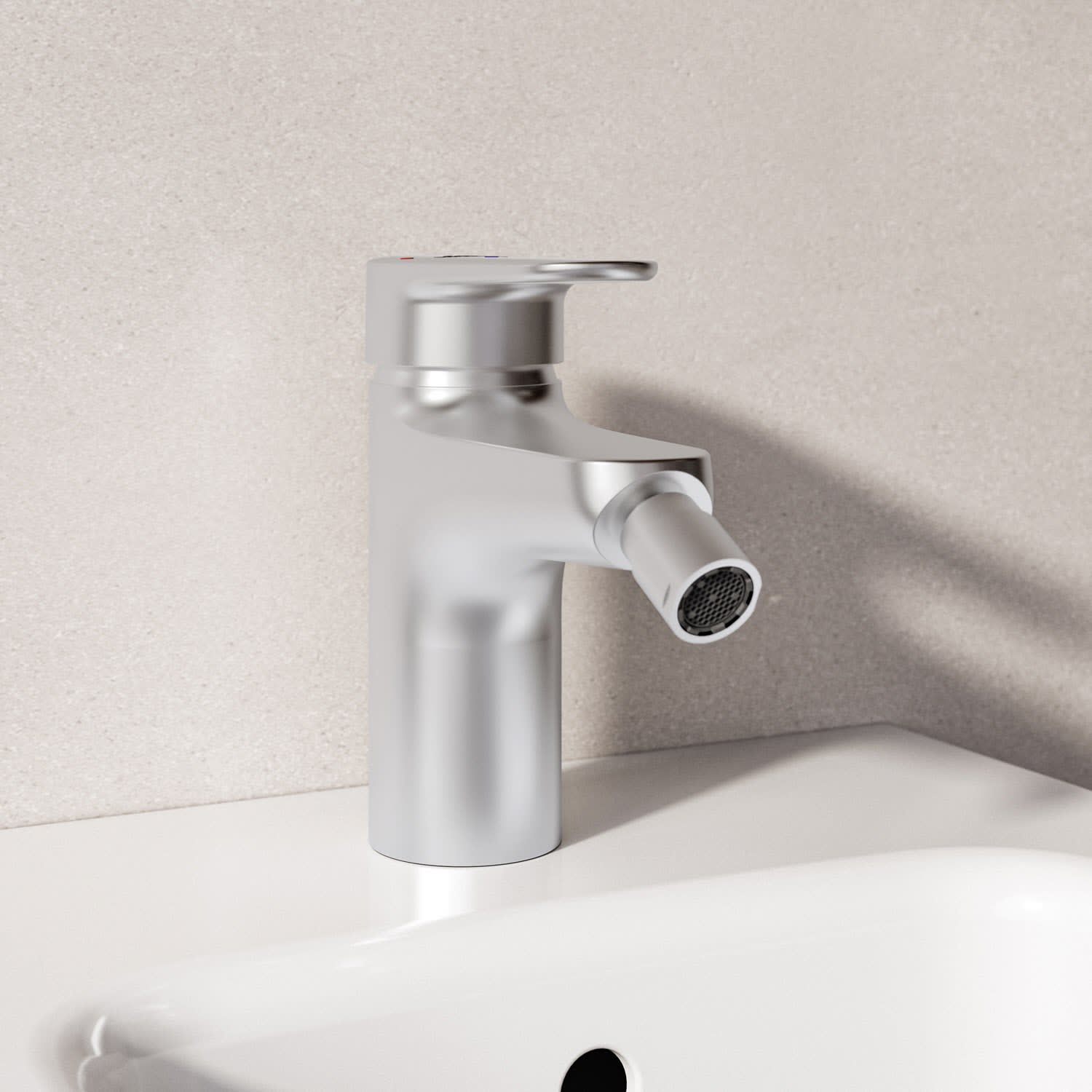Die Alu+ Bidetarmatur von Ideal Standard verbindet modernes Design mit nachhaltiger Technologie. Sie besteht zu 100 % aus recyceltem Aluminium, ist chrom- und nickelfrei und sorgt so für maximale Wasserreinheit. Die CoolBody-Technologie hält den Armaturenkörper angenehm temperiert und schützt zuverlässig vor Verbrühungen. Die langlebige FirmaFlow®-Kartusche sorgt für präzise Temperaturregelung und hohe Zuverlässigkeit. Dank BlueStart fließt in der Mittelstellung nur Kaltwasser – für spürbare Energieeinsparungen im Alltag. Ideal für moderne Bäder, in denen Nachhaltigkeit auf Stil trifft.