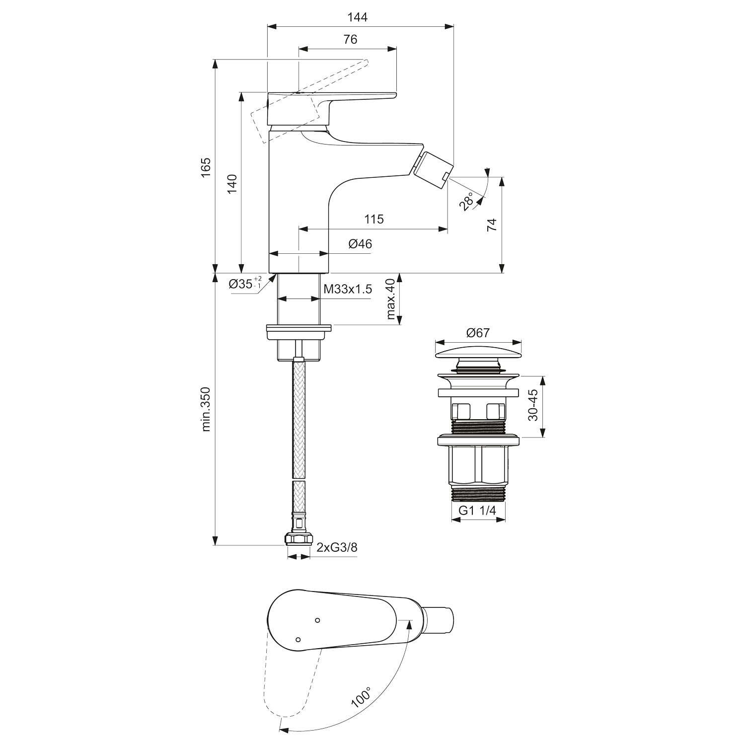 Ideal Standard Alu+ Einhebel-Bidetarmatur mit Push-Open Ventil