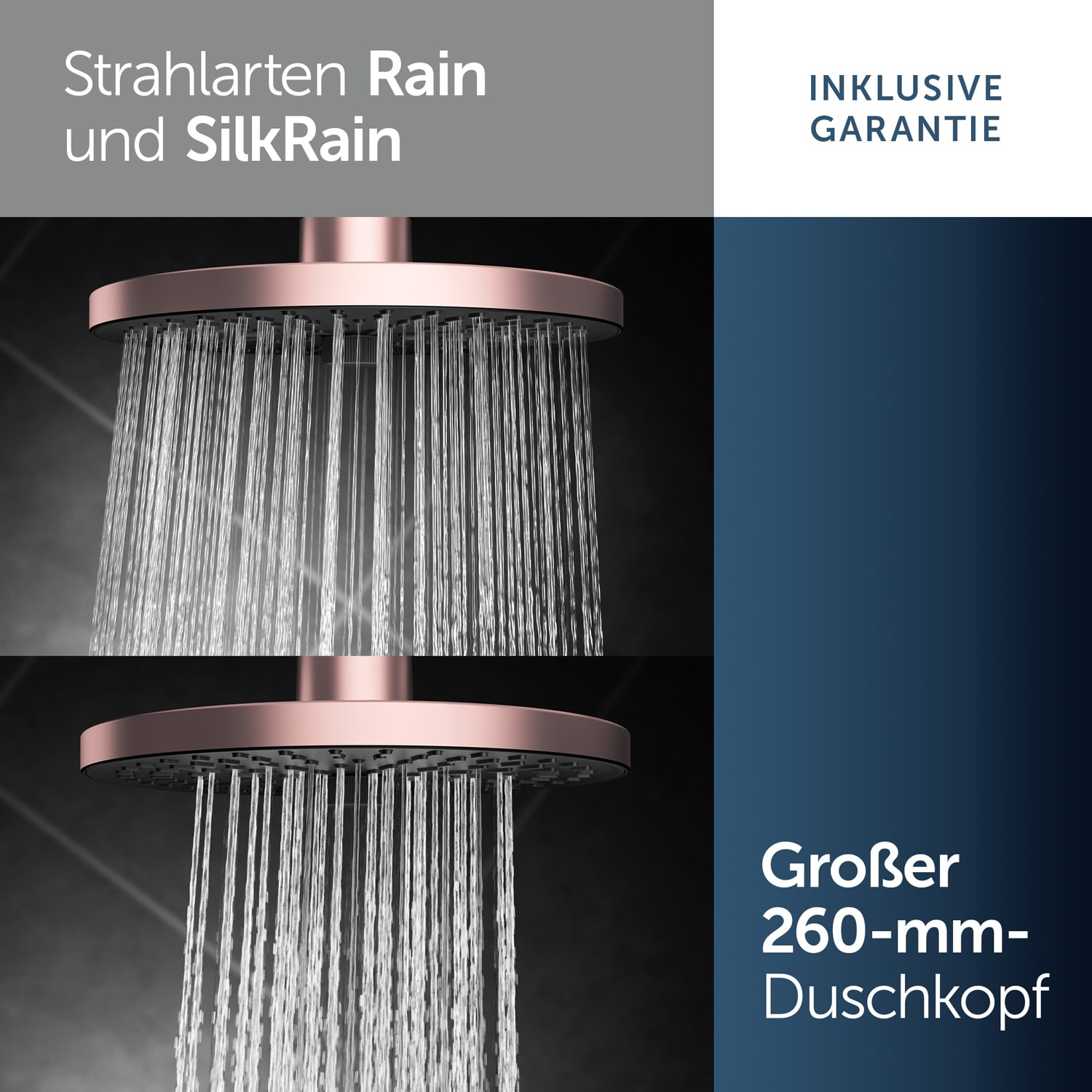 - Strahlarten: 2 (Regen und sanfter Regen)