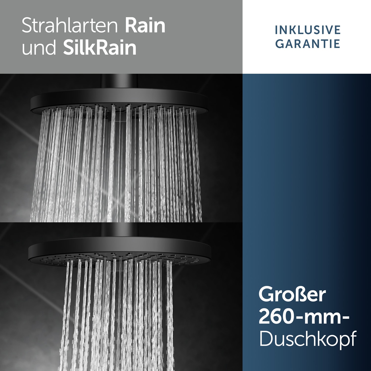 - Strahlarten: 2 (Regen und sanfter Regen)