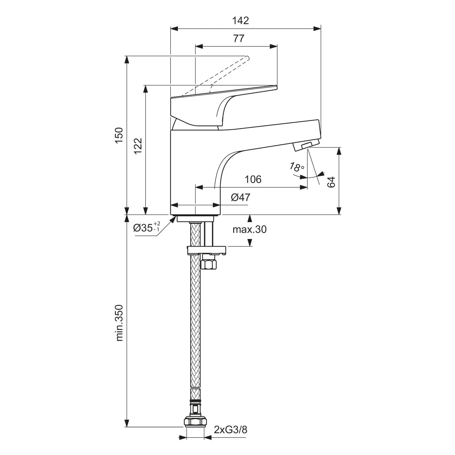 - Benötigte Hahnlöcher: 1