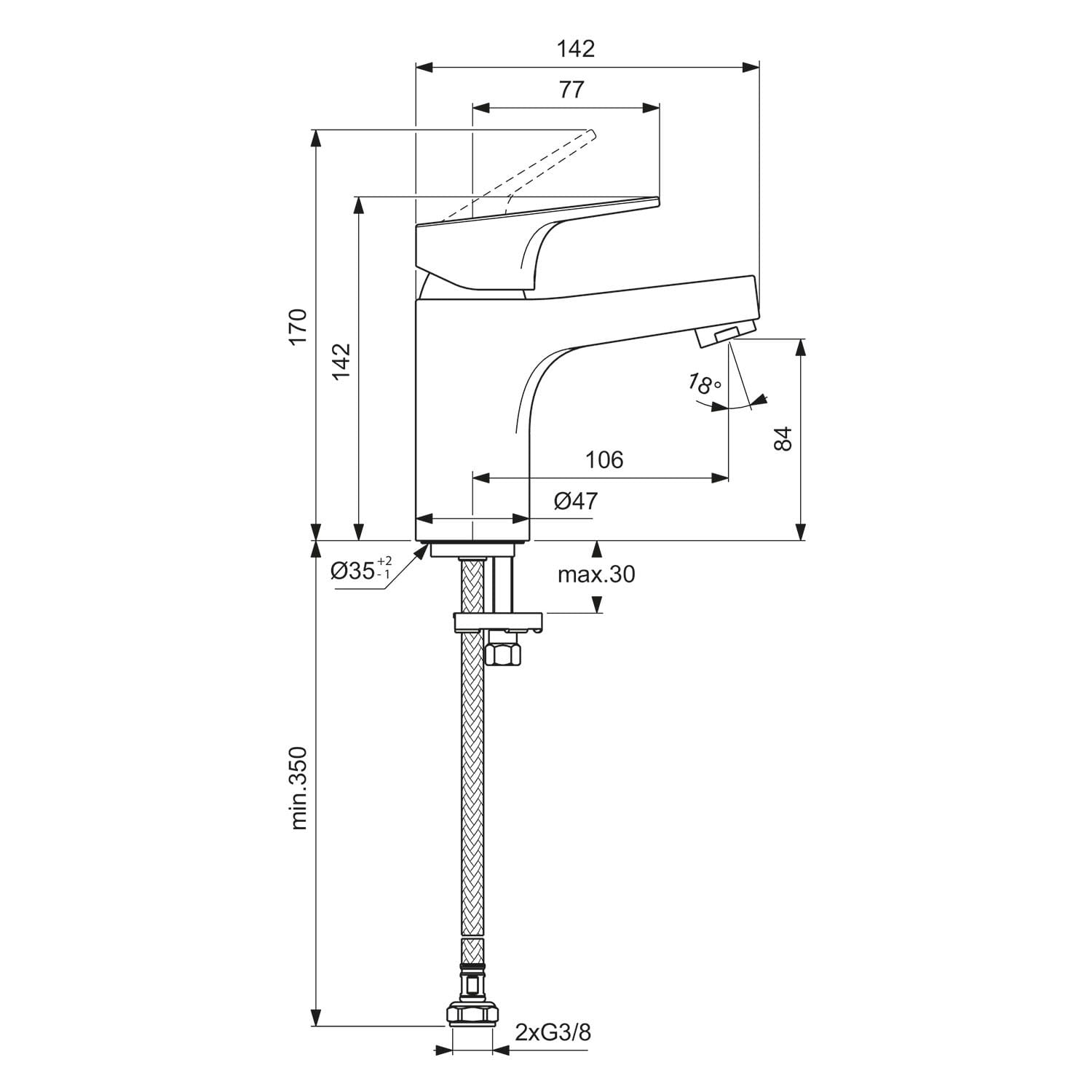 Ideal Standard Cerabase Waschtischarmatur H80 ohne Ablaufgarnitur Ausladung 10,6 cm