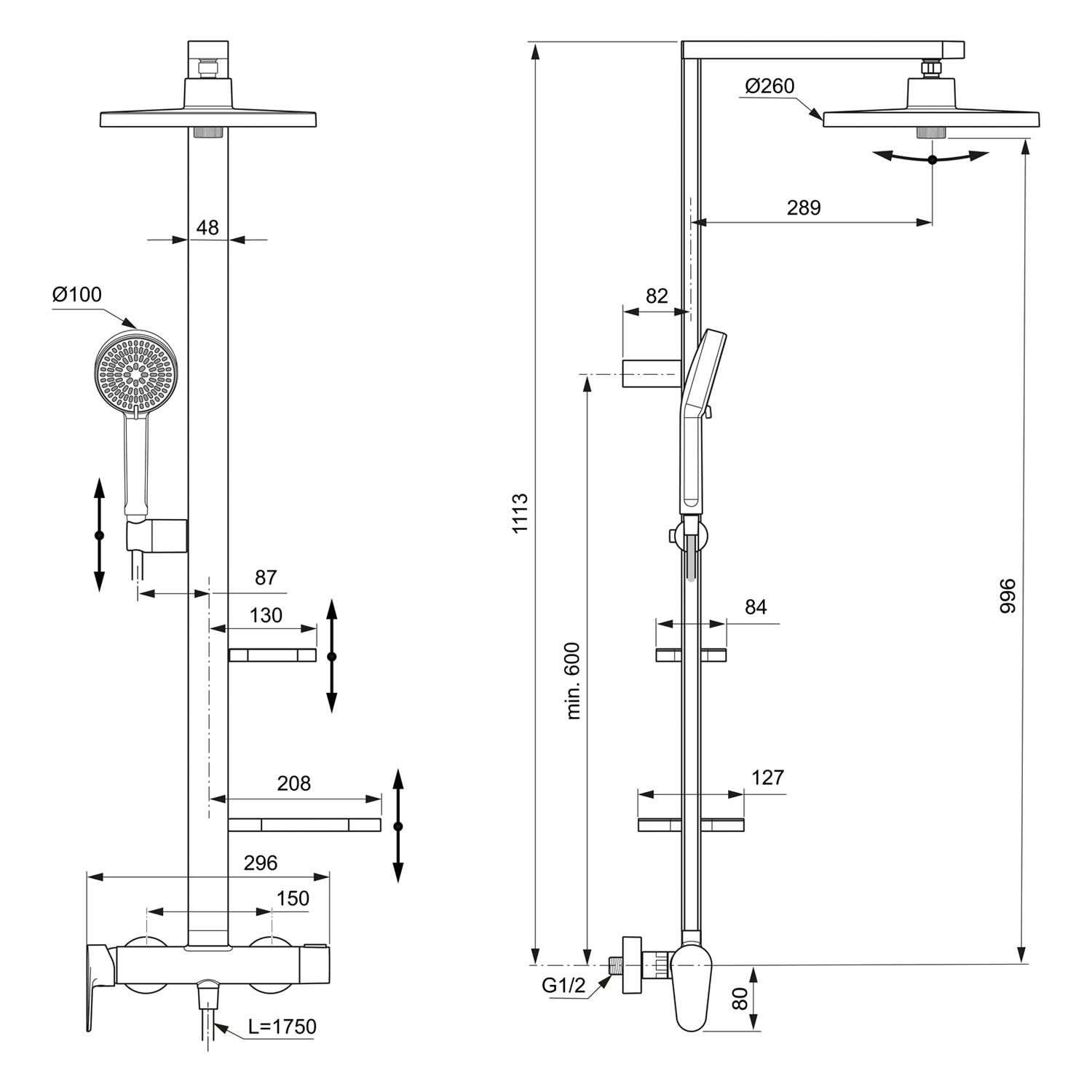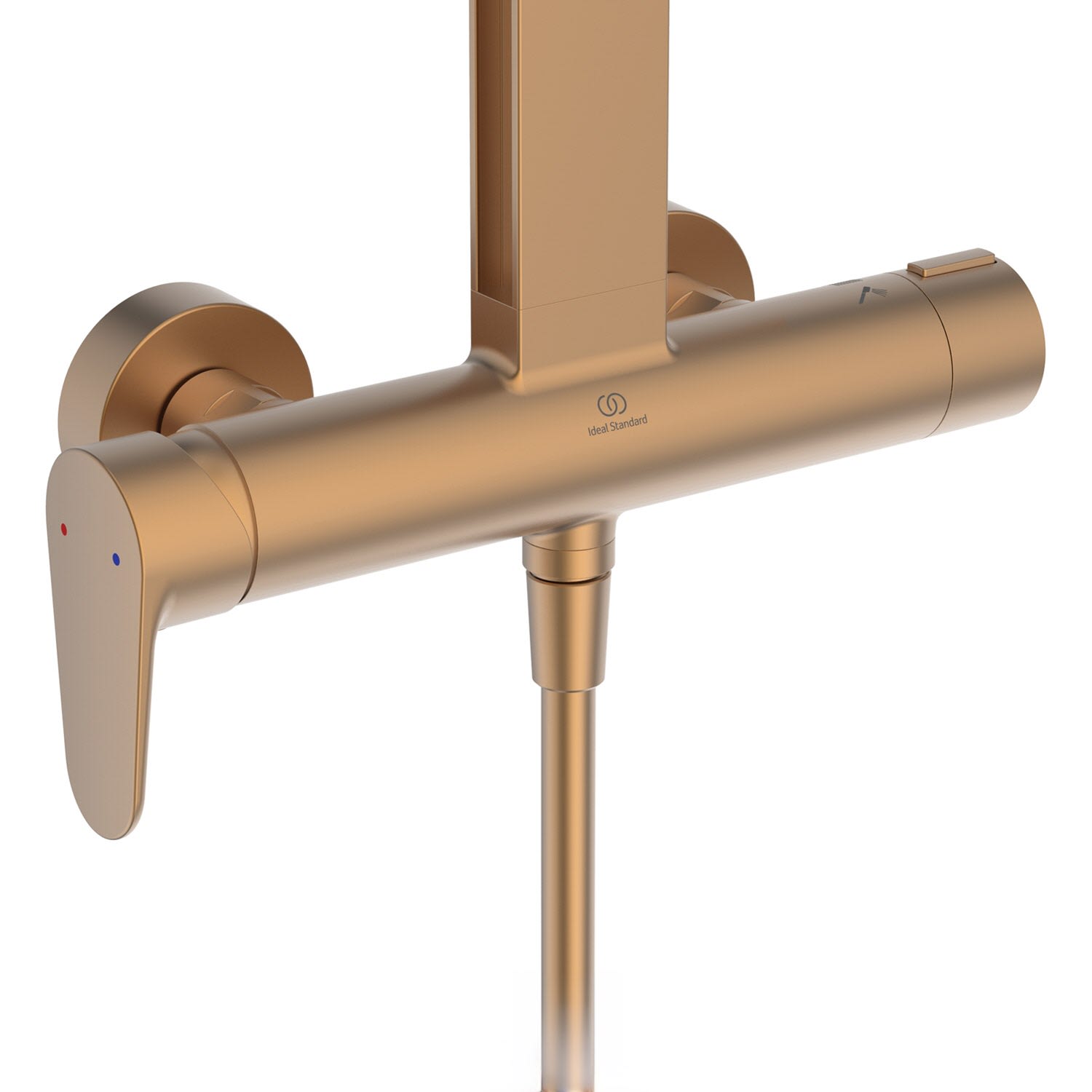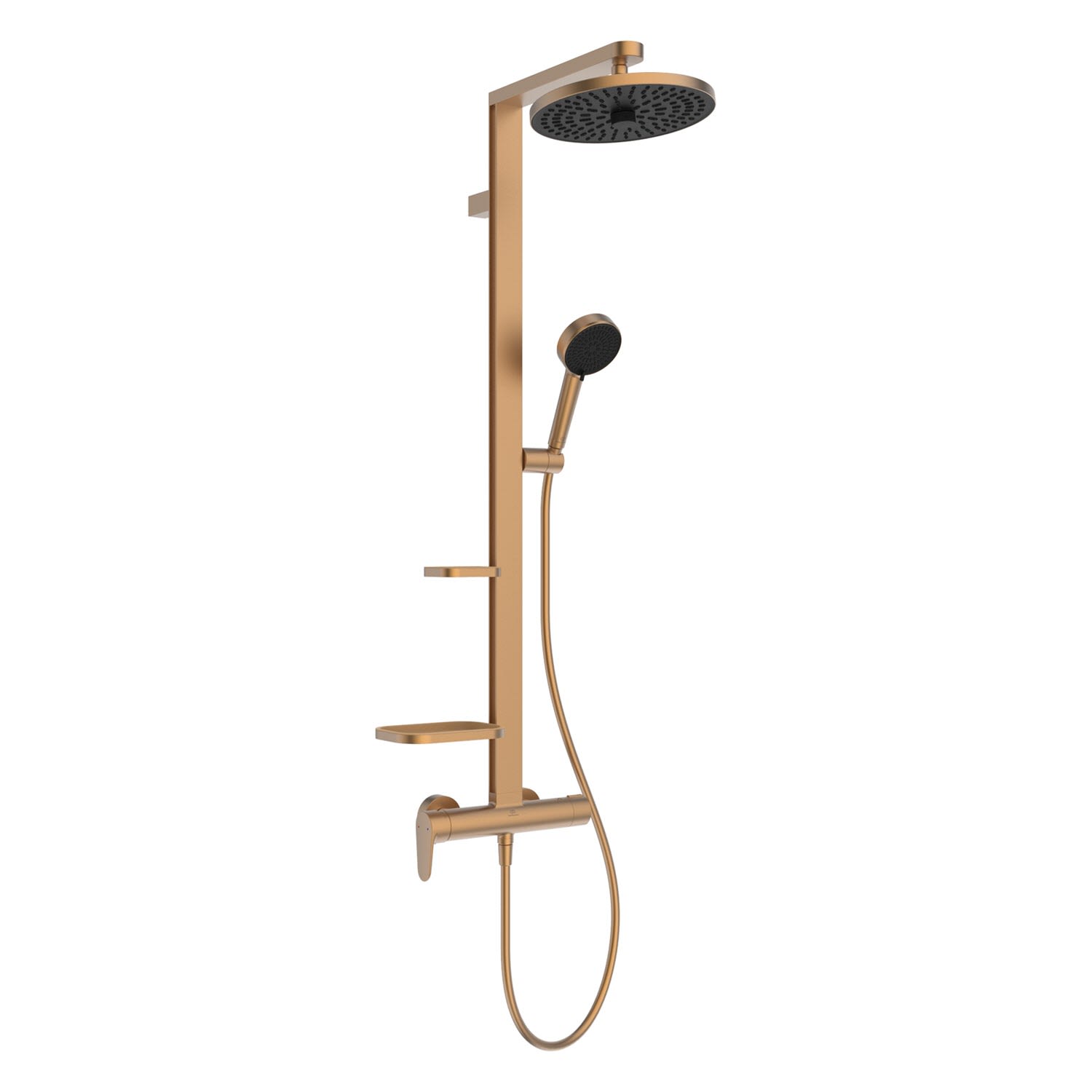 Ideal Standard Ceraflow Alu+ Duschsystem mit Brausearmatur, 2 Ablagen, 2-Funktions-Handbrause und 2-Funktions-Kopfbrause