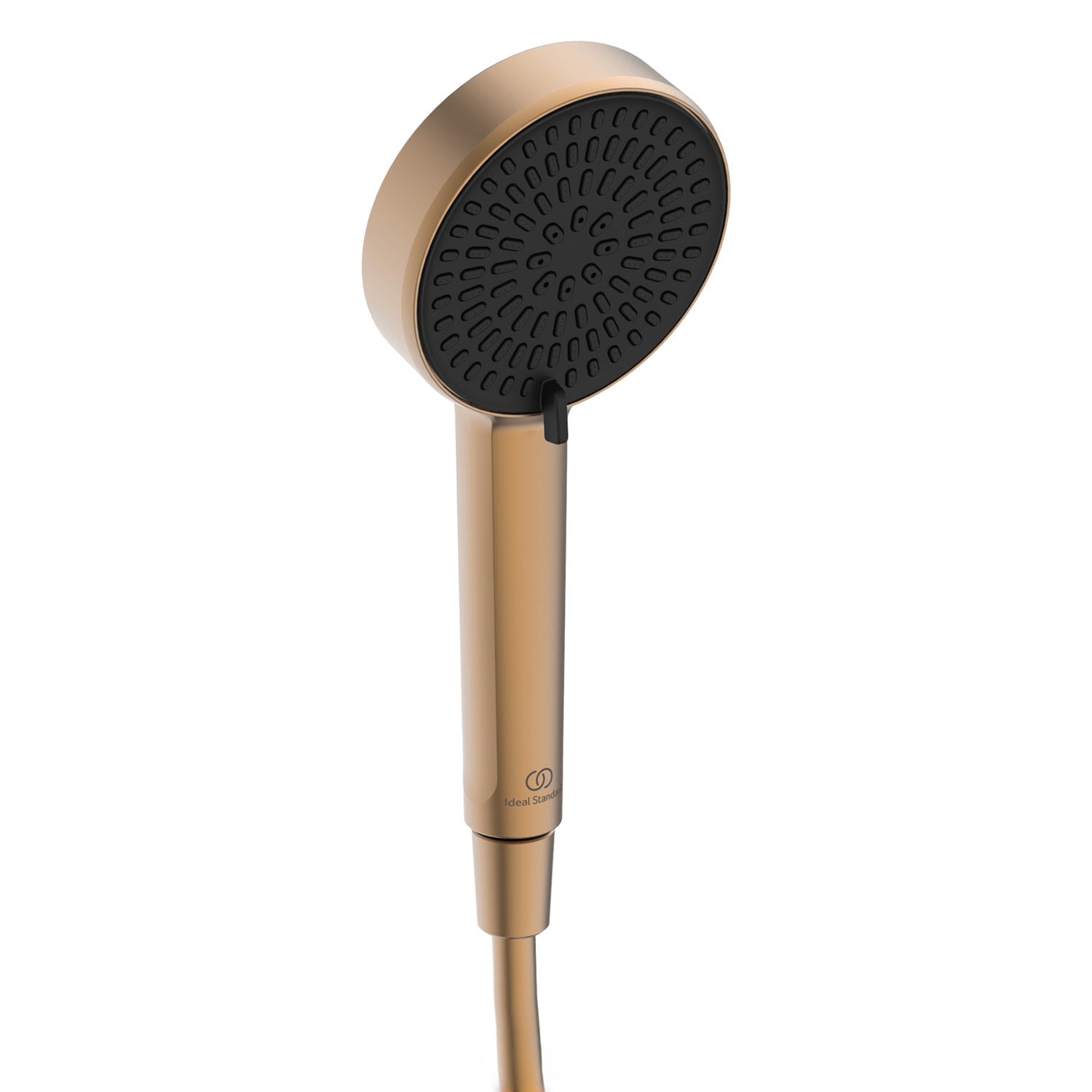 Erleben Sie vollendeten Duschkomfort mit dem Ceraflow Alu+ Duschsystem von Ideal Standard. Das hochwertige Aluminiumdesign aus 100 % recyceltem Aluminium vereint moderne Ästhetik mit maximaler Wasserreinheit – ganz ohne Chrom oder Nickel. Die hochwertige FirmaFlow®-Kartusche überzeugt durch ihre lange Lebensdauer, präzise Temperaturregelung und mühelose Einhandbedienung. So stellen Sie Durchfluss und Temperatur jederzeit bequem und exakt ein. Ein integrierter Temperaturbegrenzer schützt zuverlässig vor zu heißem Wasser. Wählen Sie bei der Handbrause zwischen zwei Strahlarten: dem sanften SilkRain mit ultrafeinen Wassertropfen für ein seidiges Duschgefühl oder dem konzentrierten Rain-Strahl zur Muskelentspannung. Auch die Kopfbrause bietet zwei Strahlarten: Der Rain-Strahl sorgt für gleichmäßige Wasserverteilung, während SilkRain mit feinem, weichem Wasserstrahl für besondere Wohlfühlmomente sorgt. Herausnehmbare Ablagen bieten praktischen Stauraum für Ihre Duschutensilien und können flexibel an der Brausestange positioniert werden. Für ein nachhaltiges Duscherlebnis, das Komfort, Sicherheit und Umweltbewusstsein perfekt vereint.