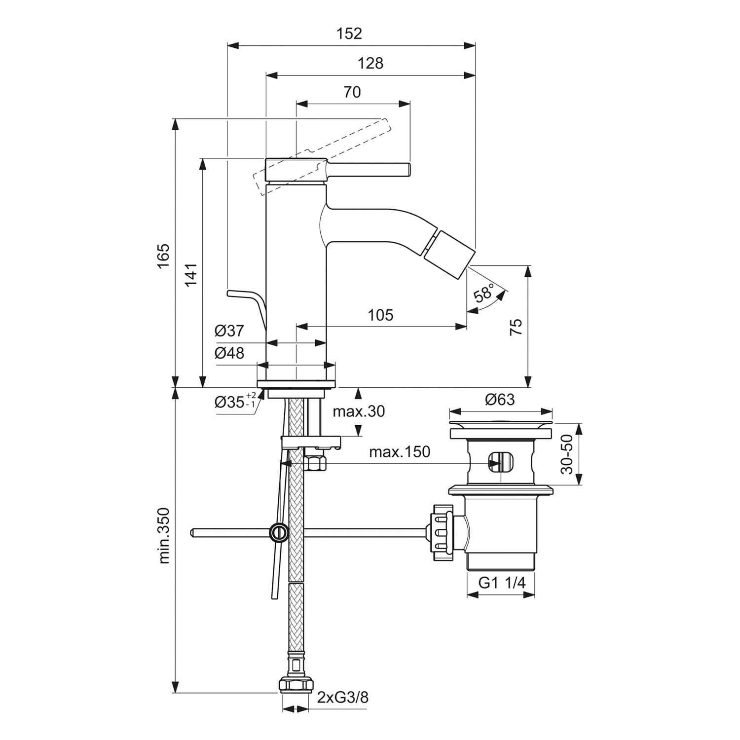 Ideal Standard Ceraline Nuovo Bidetarmatur mit Zugstangen-Ablaufgarnitur