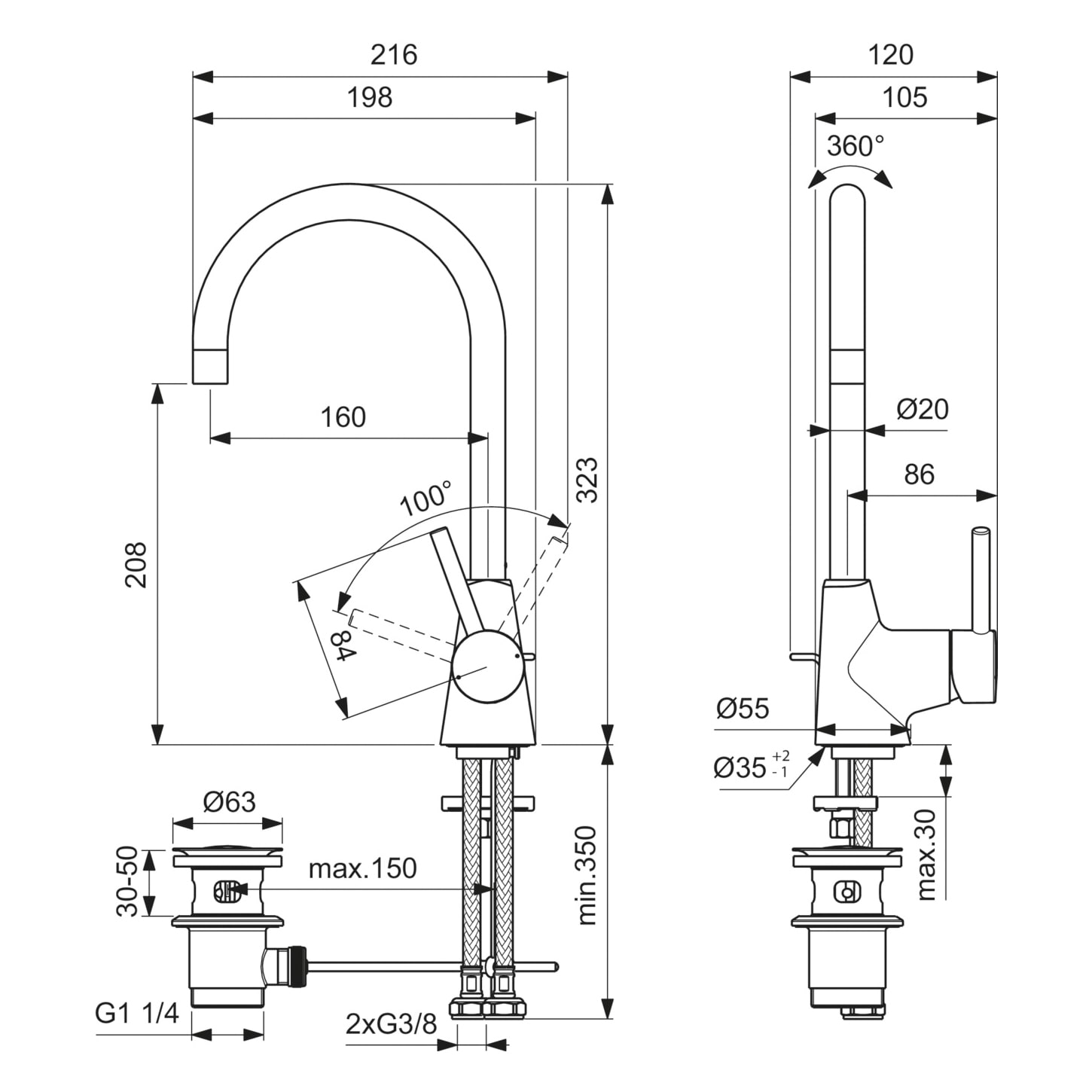 - Anzahl der erforderlichen Hahnlöcher: 1