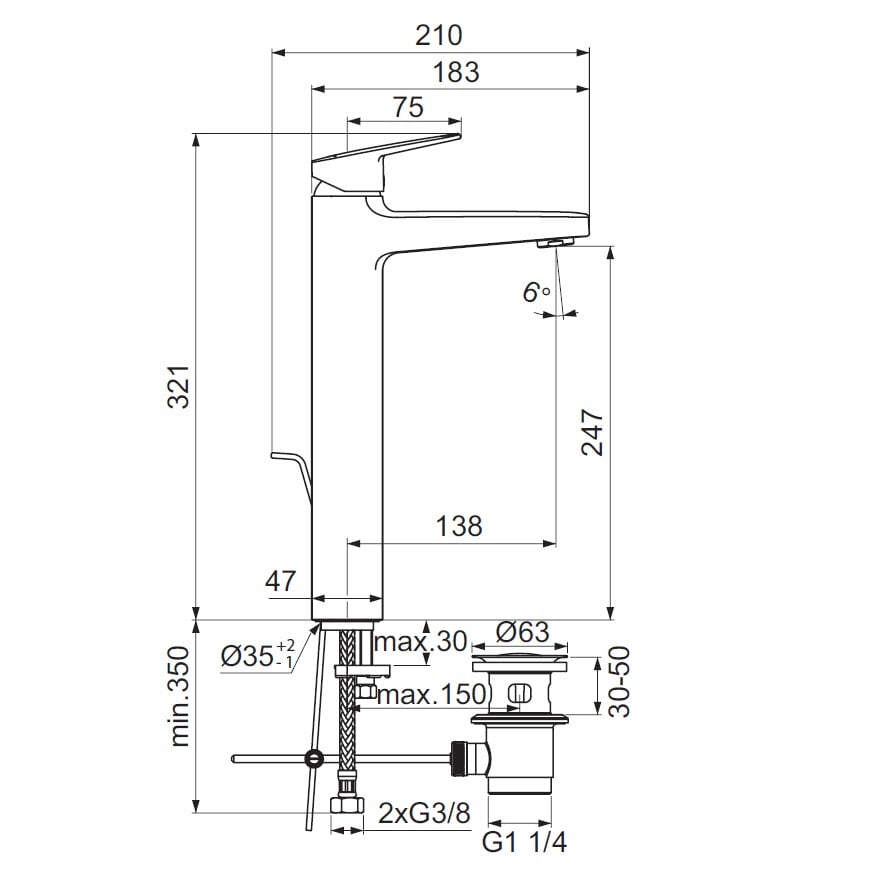Ideal Standard Ceraplan Waschtischarmatur verl. Sockel H250 ohne Ablaufgarnitur