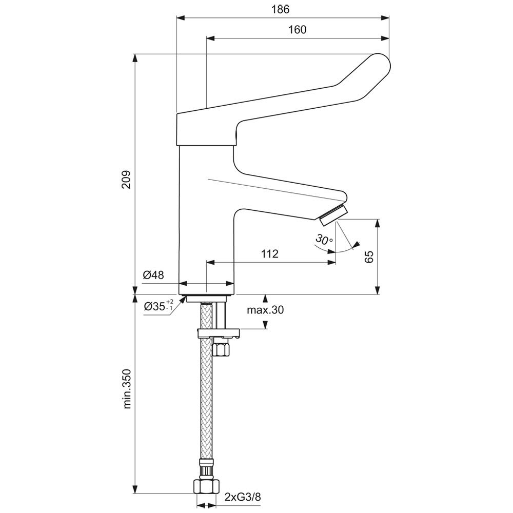Ideal Standard CeraPlus 2 Waschtischarmatur mit Klinikhebel, ohne Metallablauf