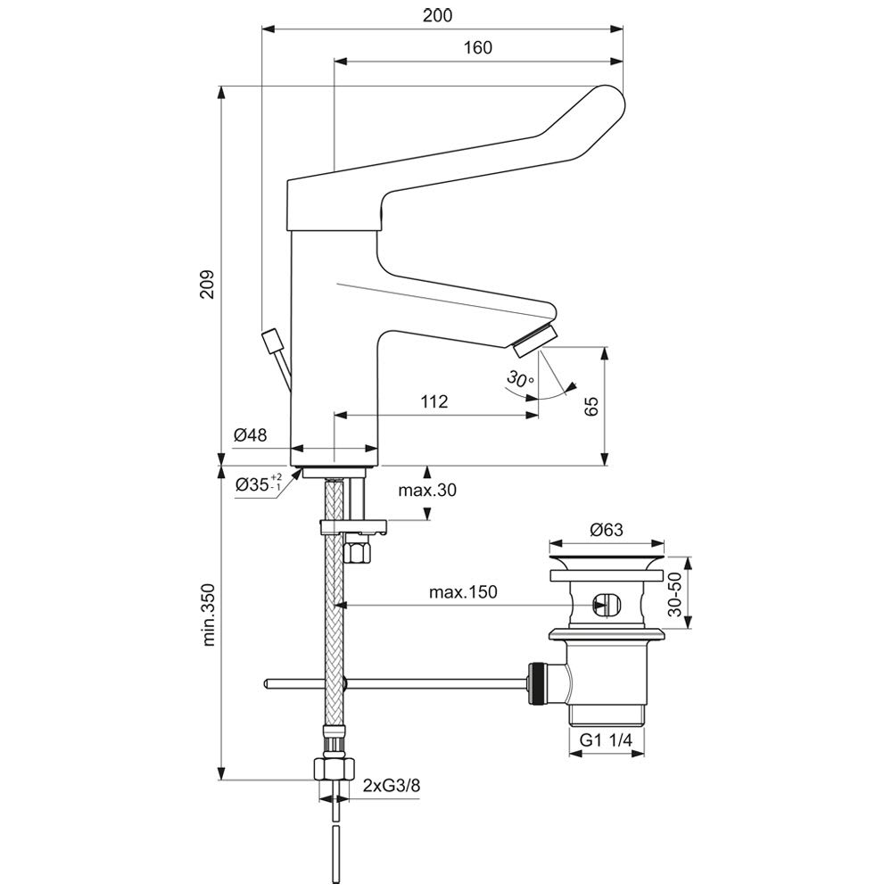 Ideal Standard CeraPlus 2 Waschtischarmatur mit Klinikhebel und Metallablauf