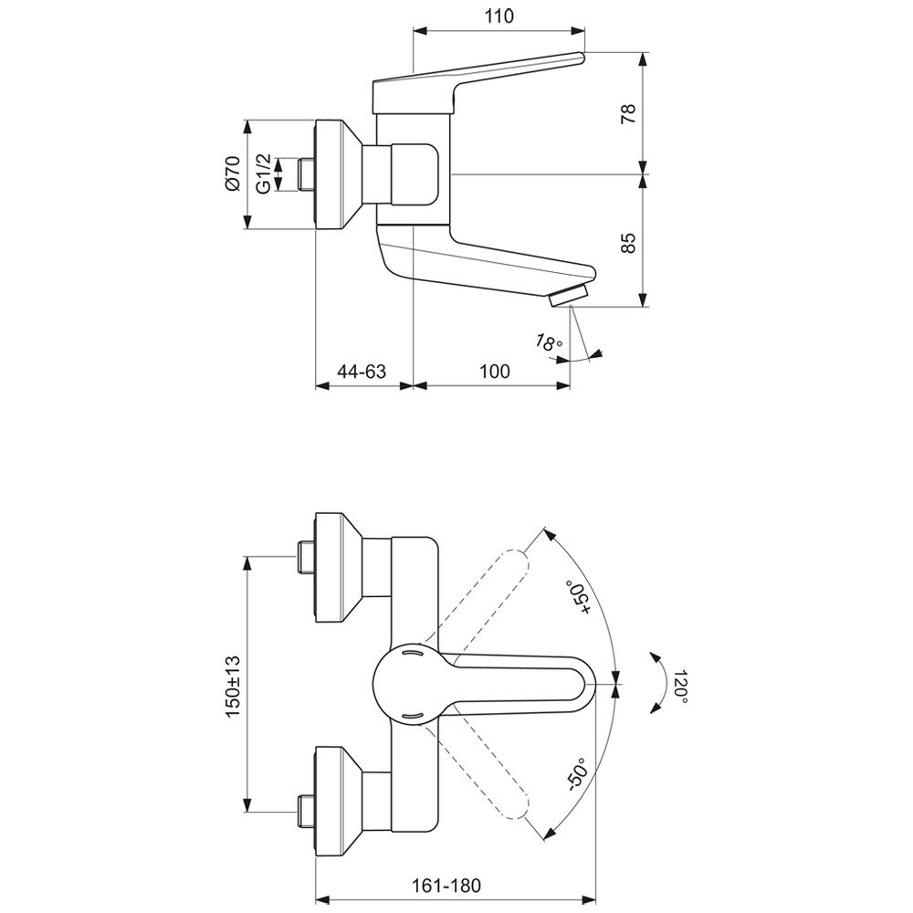 Ideal Standard CeraPlus 2 Wand-Waschtischarmatur, Auslauf 10 cm