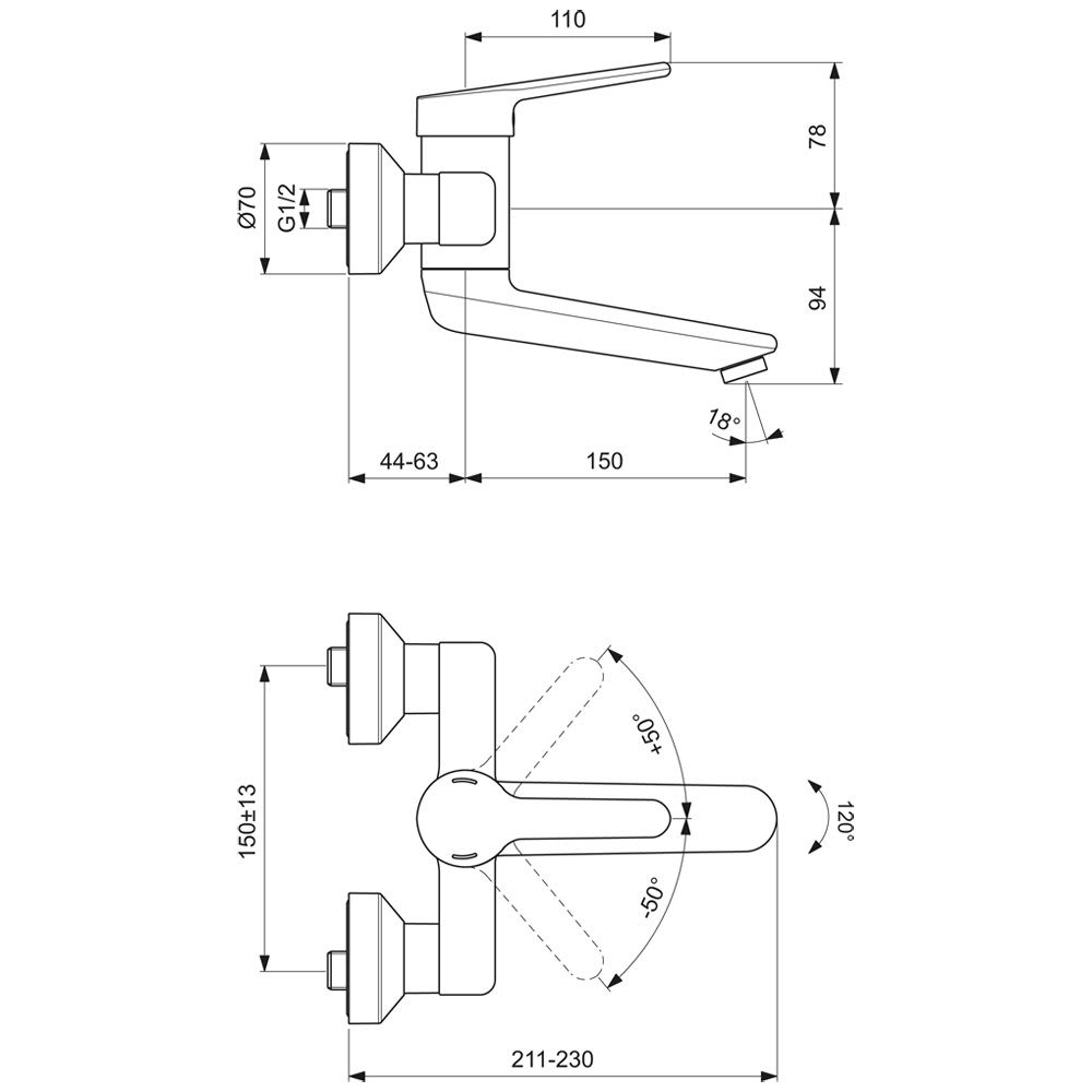 Ideal Standard CeraPlus 2 Wand-Waschtischarmatur, Auslauf 15 cm