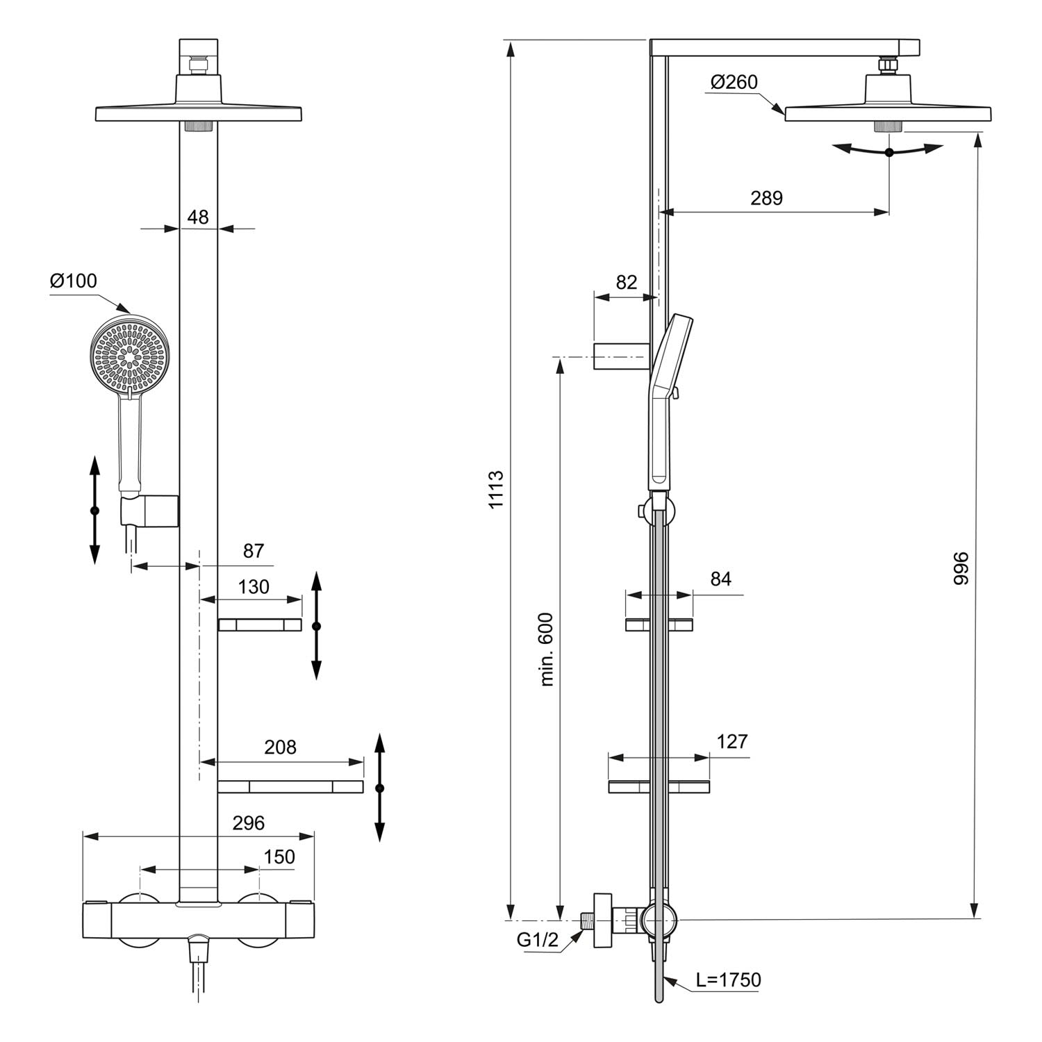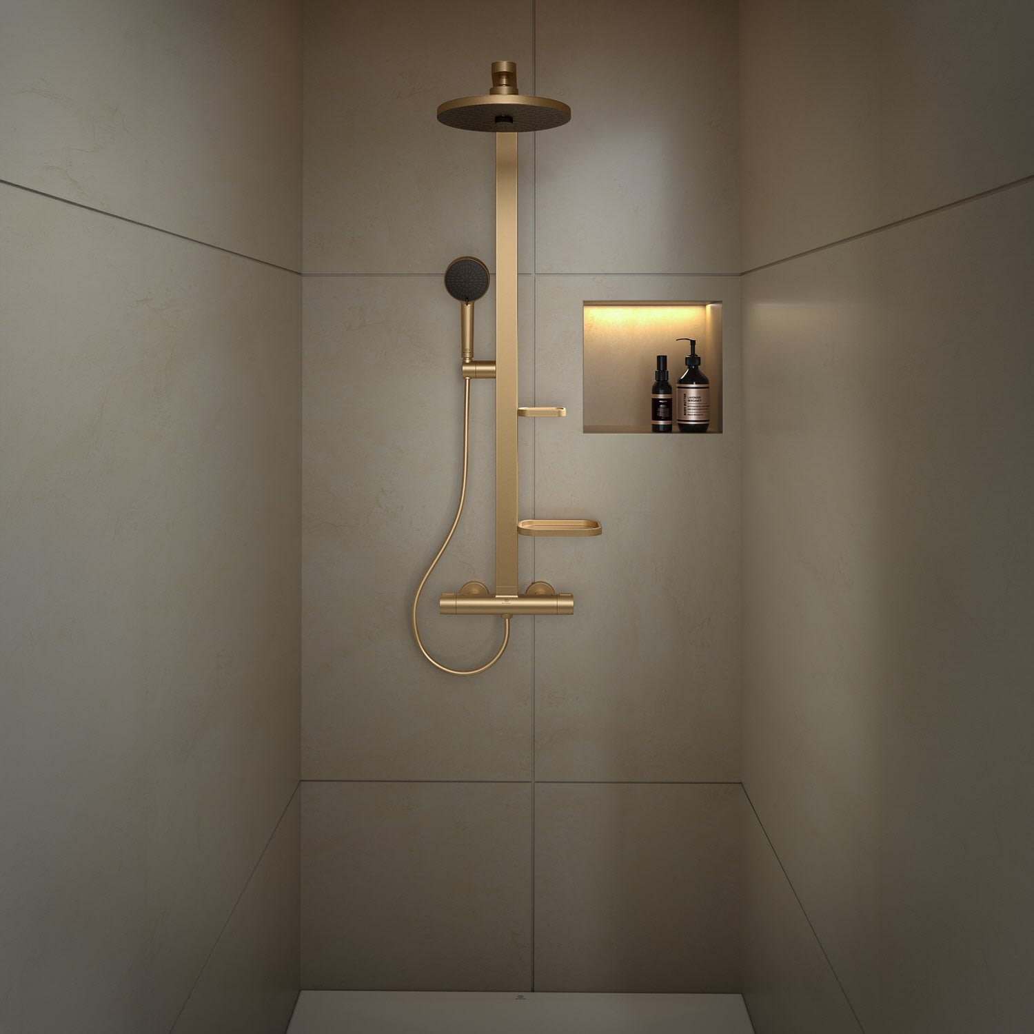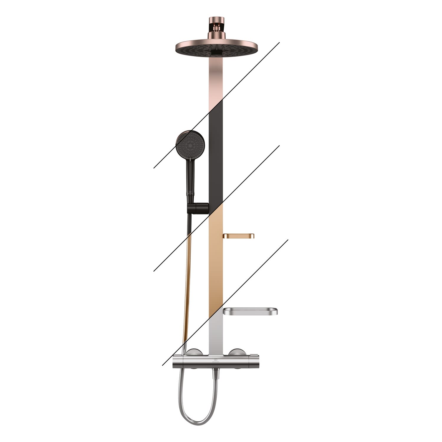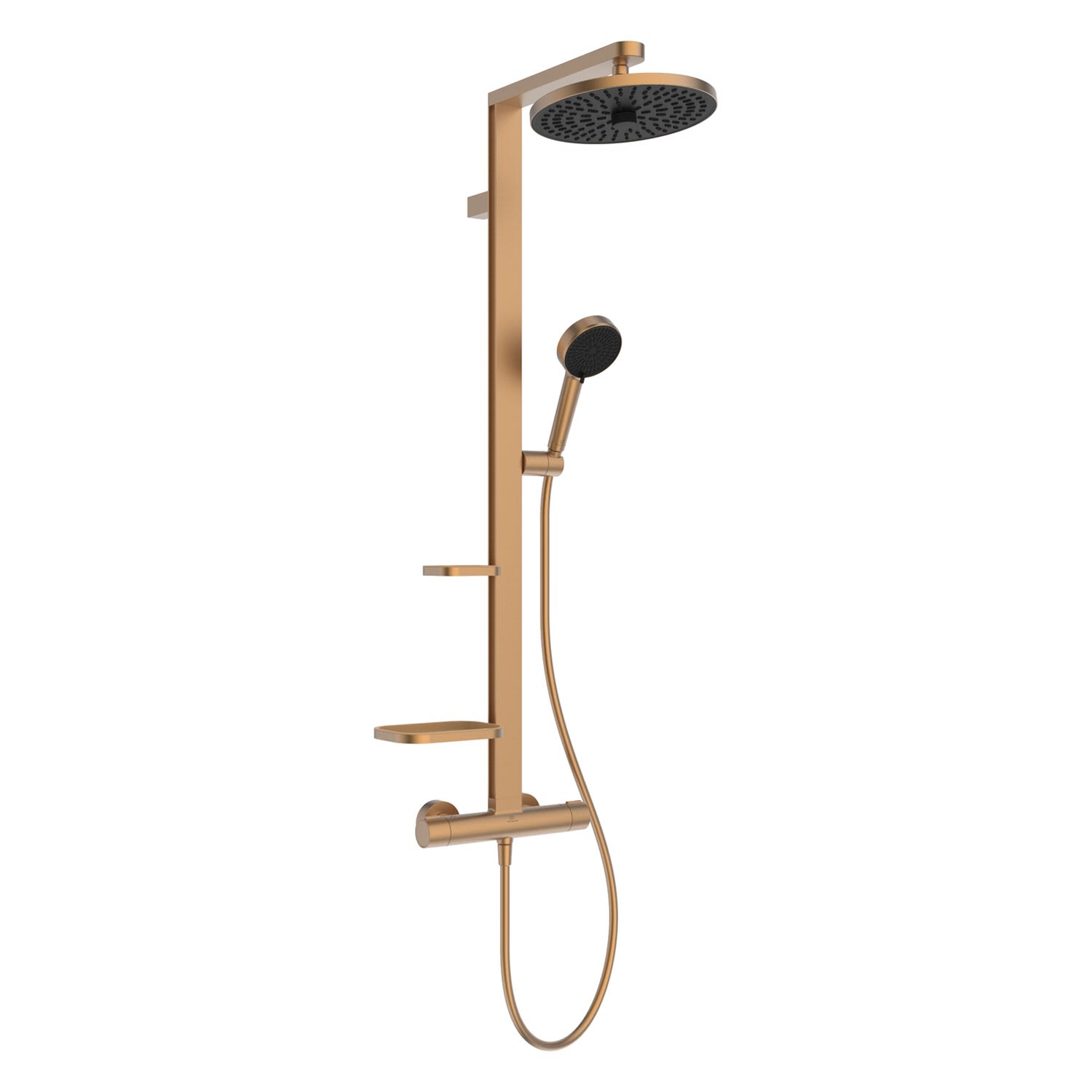 Ideal Standard Ceratherm Alu+ Duschsystem mit Brausethermostat, 2 Ablagen, 2-Funktions-Handbrause und 2-Funktions-Kopfbrause
