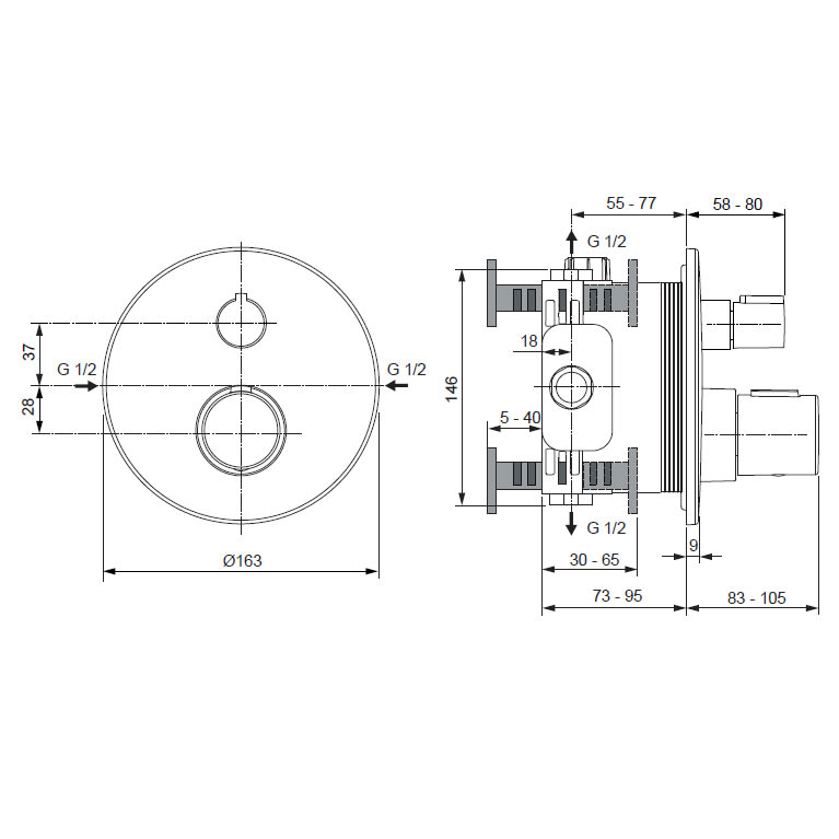 Ideal Standard CeraTherm T100 Brausethermostat Unterputz Bausatz 2