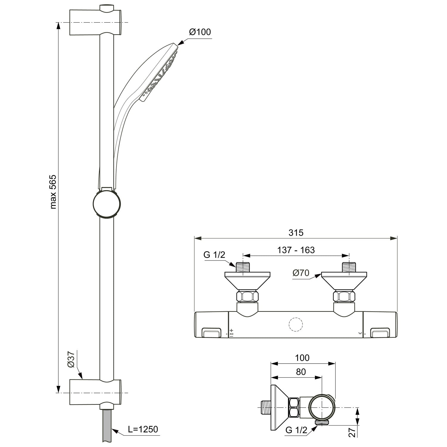 Ideal Standard CeraTherm T25 Brausekombination Aufputz mit Brausestange 60 cm
