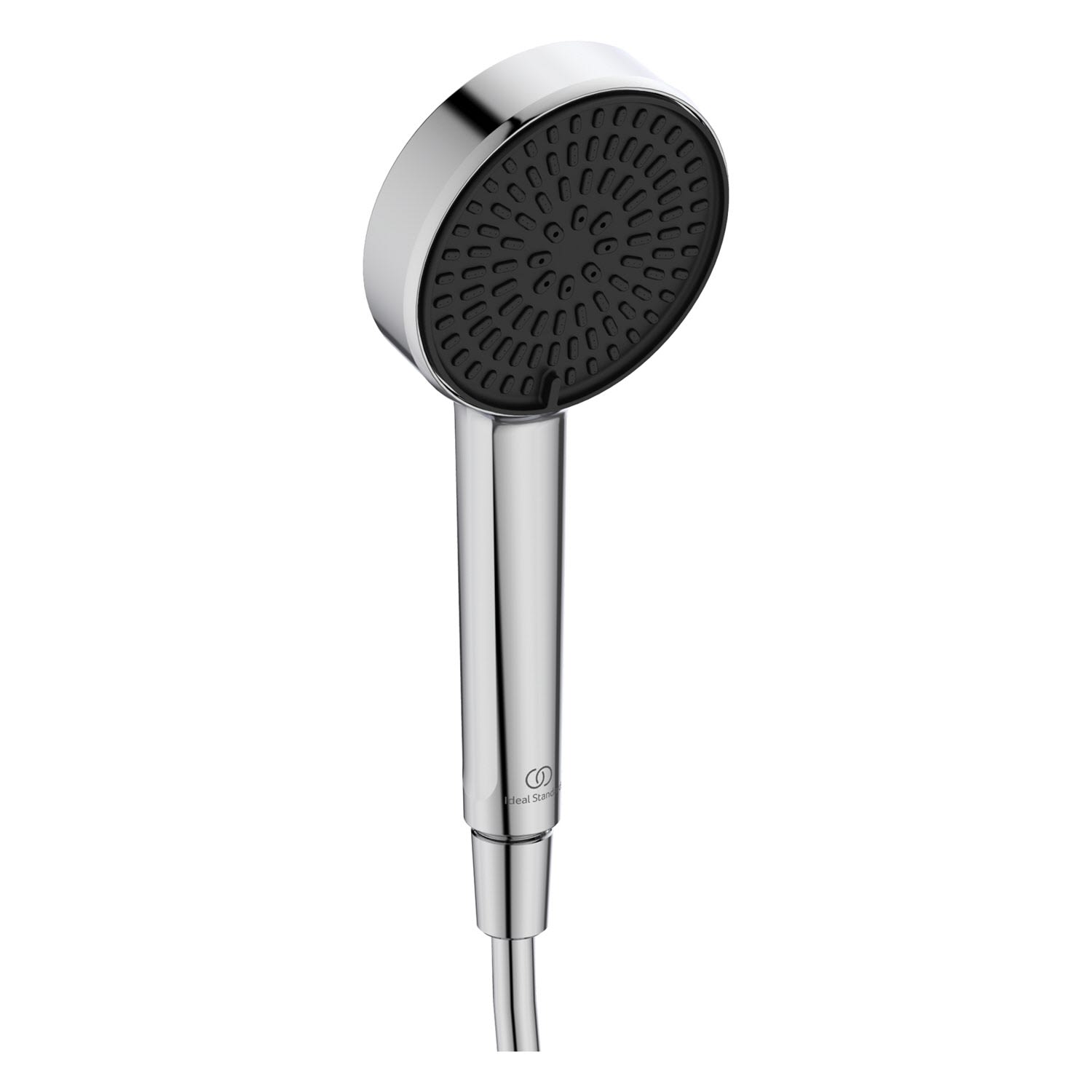 Mit dem Ideal Standard Duschsystem aus der Serie Ceratherm T25+ erwarten Sie wohltuende Duschmomente für pure Entspannung, kombiniert mit umweltfreundlicher Technologie. Mit ihrem modernen und eleganten Design fügt sich die Ceratherm T25+ Kollektion perfekt in jedes Badezimmer ein und verleiht ihm einen individuellen Stil. Sie können mit der Handbrause zwischen zwei Funktionen wählen: Entspannen Sie sich mit dem sanften Regen und seinen ultrafeinen Wassertröpfchen oder genießen Sie eine belebende Massage mit dem Massagestrahl. Die Kopfbrause verwöhnt Sie ebenfalls mit zwei Strahlarten, sanftem Regen für eine entspannende Atmosphäre oder kräftigem Regen für ein belebendes Duscherlebnis. Beide Brausen sind dank der EasyClean-Funktion einfach zu reinigen, Kalkablagerungen an den Silikondüsen lassen sich mit einem leichten Wischen entfernen. Dieses Duschsystem bietet maximalen Komfort durch die Flex-Funktion, der Duschkopf kann bei der Montage in der Wunschhöhe eingestellt werden.