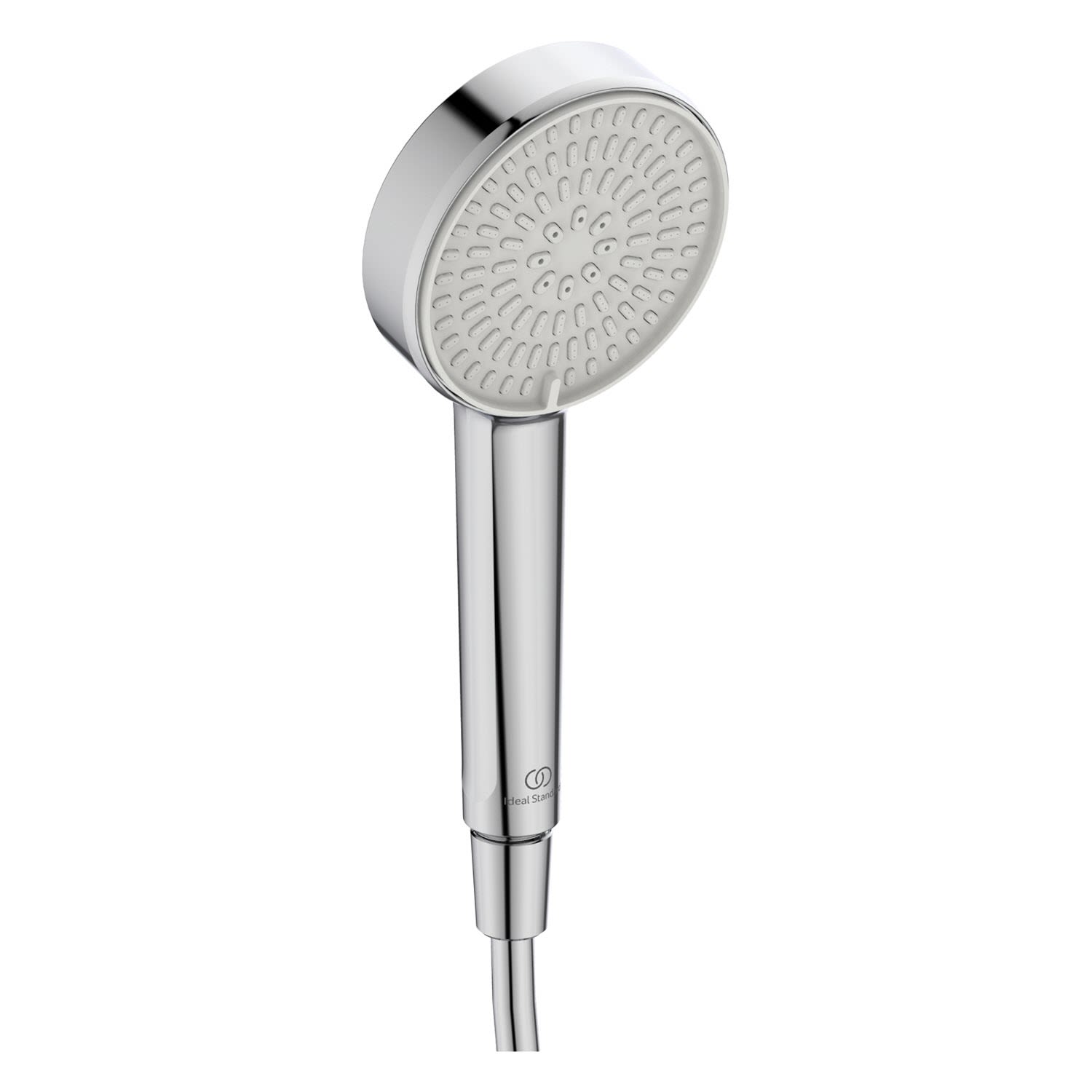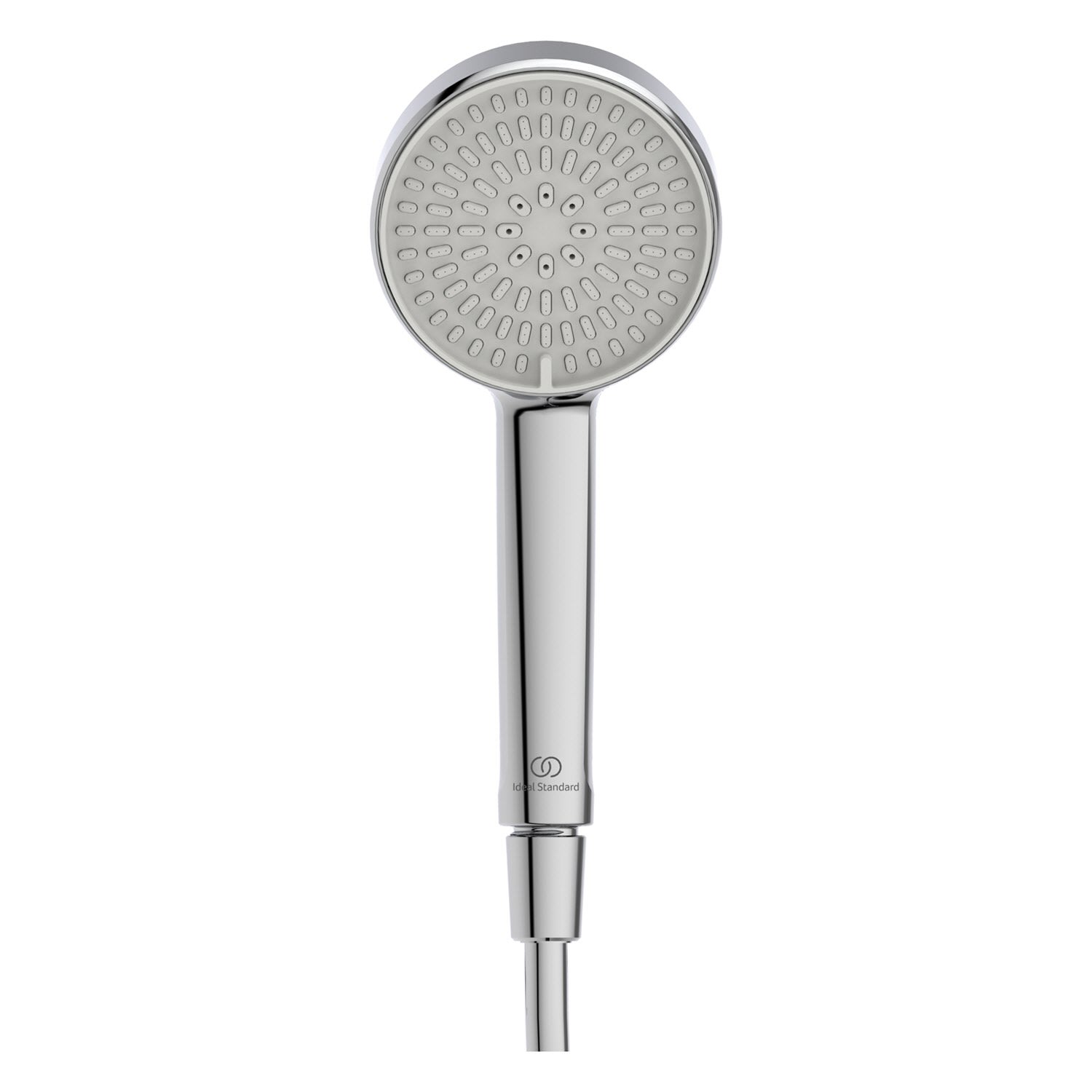 Mit dem Ideal Standard Duschsystem aus der Serie Ceratherm T25 N erwarten Sie wohltuende Duschmomente für pure Entspannung, kombiniert mit umweltfreundlicher Technologie. Mit ihrem modernen und eleganten Design fügt sich die Ceratherm T25 N Kollektion perfekt in jedes Badezimmer ein und verleiht ihm einen individuellen Stil. Sie können mit der Handbrause zwischen zwei Funktionen wählen: Entspannen Sie sich mit dem sanften Regen und seinen ultrafeinen Wassertröpfchen oder genießen Sie eine belebende Massage mit dem Massagestrahl. Die Kopfbrause verwöhnt Sie ebenfalls mit zwei Strahlarten, sanftem Regen für eine entspannende Atmosphäre oder kräftigem Regen für ein belebendes Duscherlebnis. Beide Brausen sind dank der EasyClean-Funktion einfach zu reinigen, Kalkablagerungen an den Silikondüsen lassen sich mit einem leichten Wischen entfernen. Dieses Duschsystem bietet maximalen Komfort durch die Flex-Funktion, der Duschkopf kann bei der Montage in der Wunschhöhe eingestellt werden.