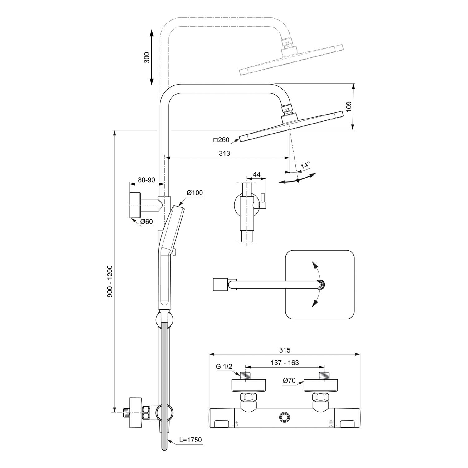 Ideal Standard Ceratherm T25 N Duschsystem, Kopfbrause eckig