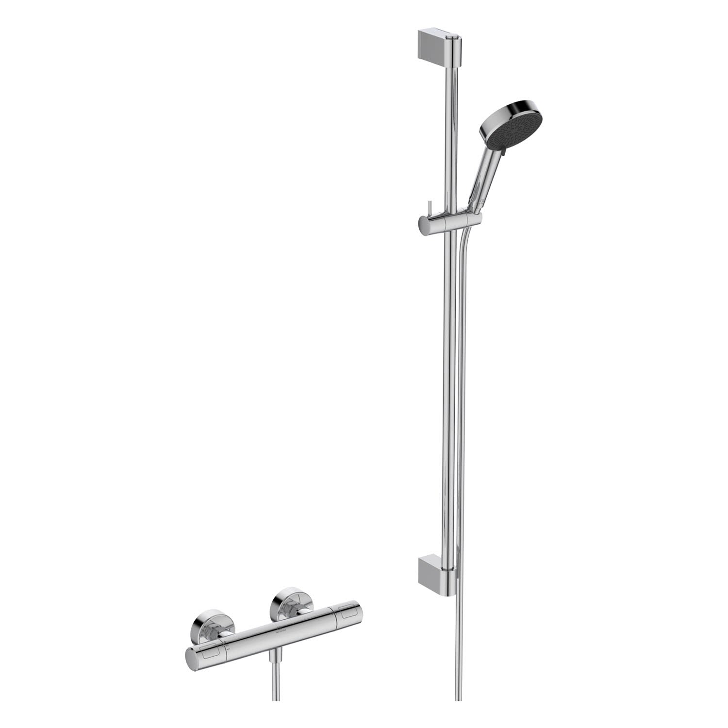 Ideal Standard Ceratherm T25 N Duscharmatur Paket, Brausestange 90 cm, Handbrause wasersparend