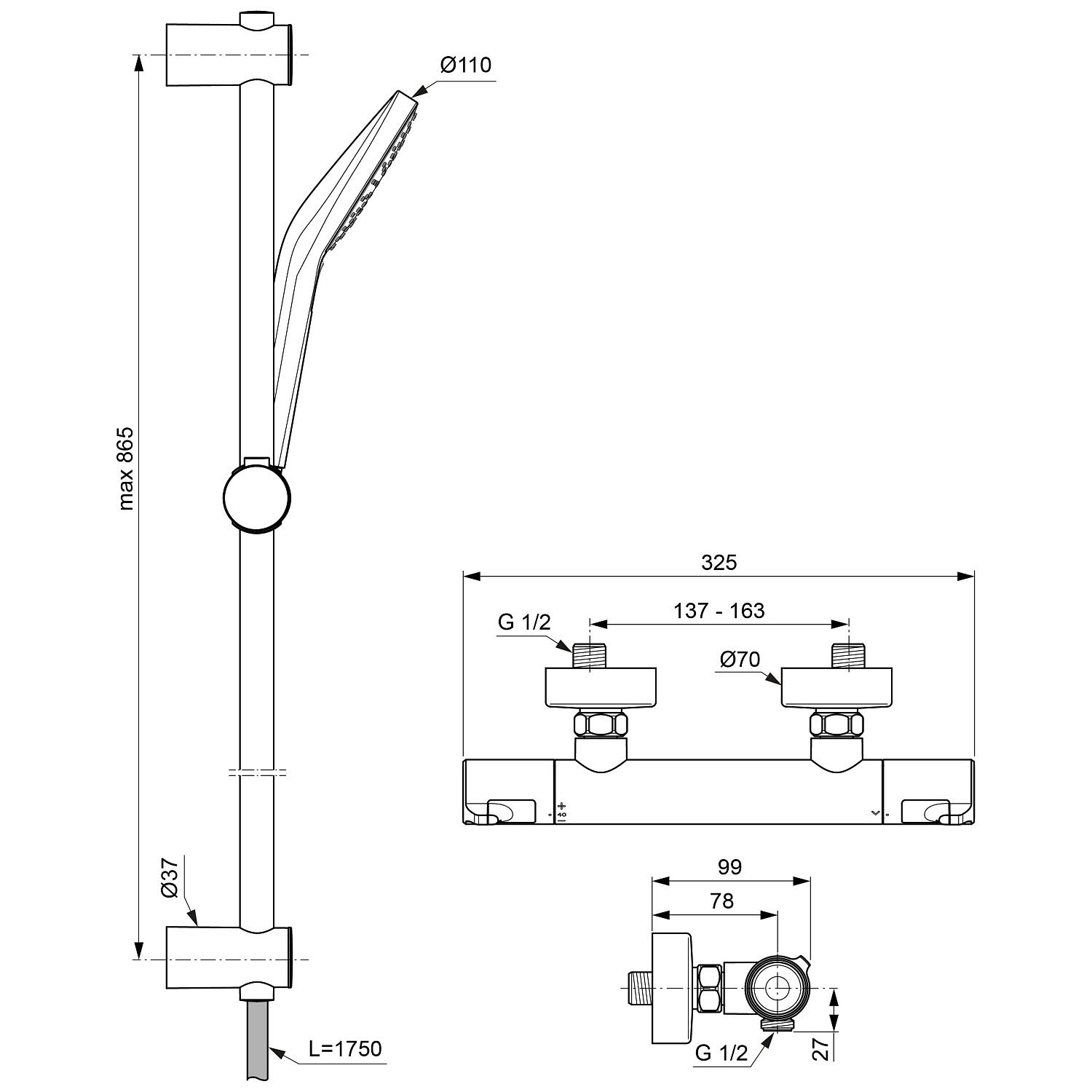 Ideal Standard CeraTherm T50 Brausekombination Aufputz mit Brausestange 90 cm