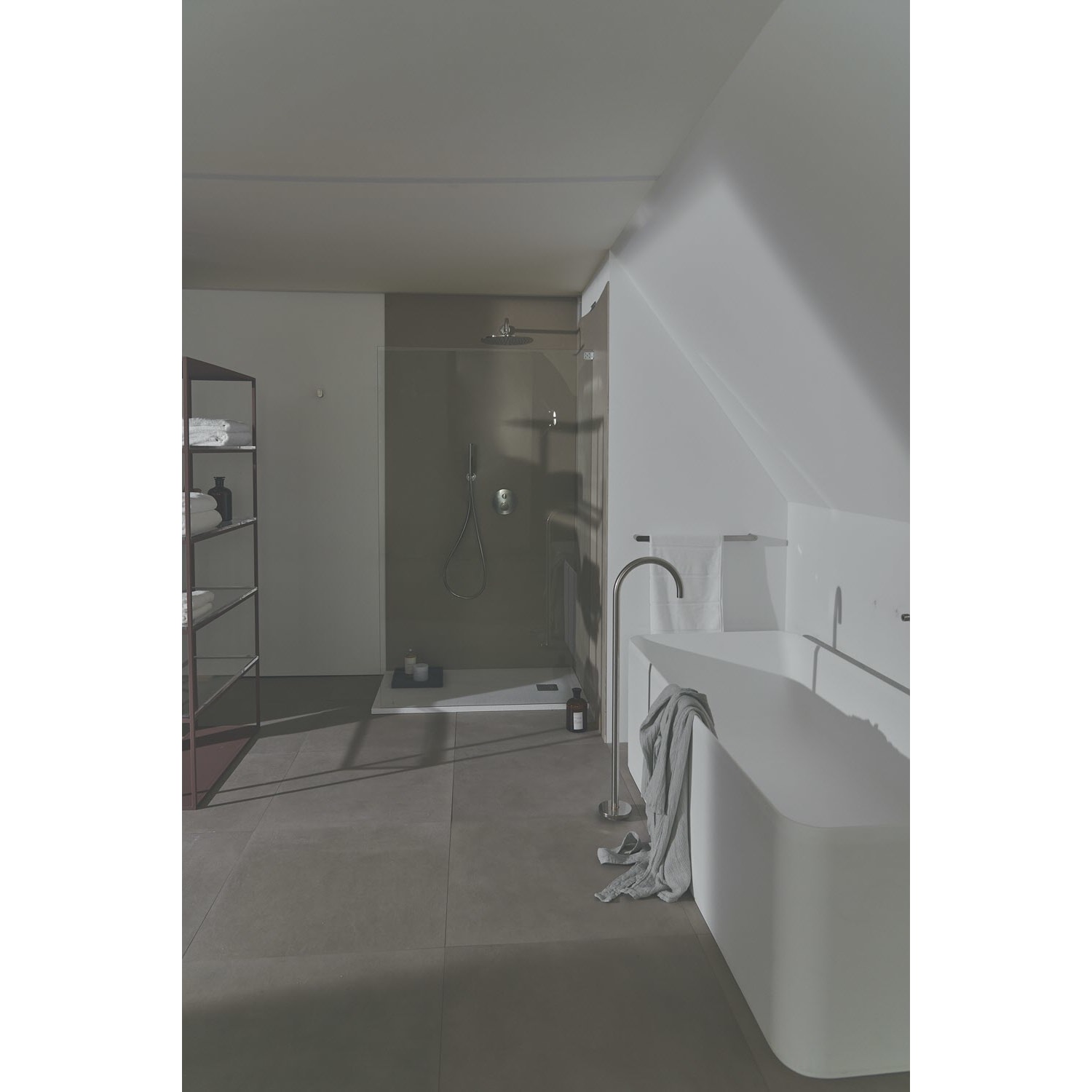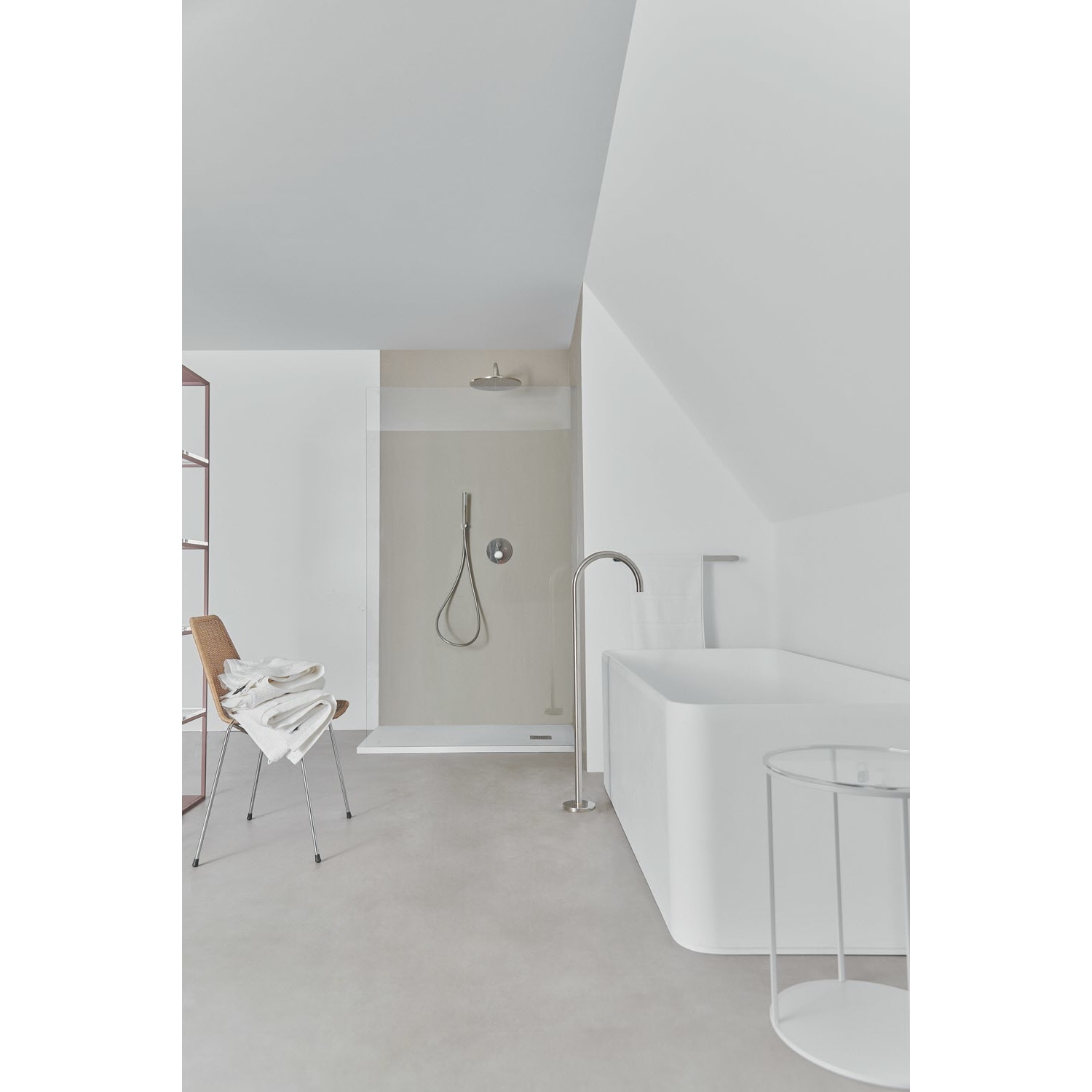 Die schlanke, nur 10 mm hohe Wandrosette aus Metall bietet Langlebigkeit und einen eleganten, minimalistischen Look, der sich perfekt in moderne Badezimmer einfügt.