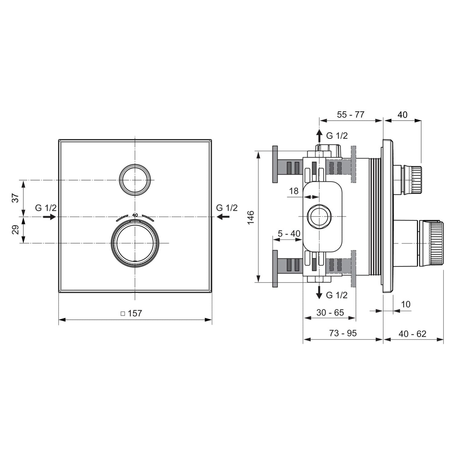 Ideal Standard Ceratherm Navigo Brausethermostat Unterputz Bausatz 2 mit 1 Entnahmestelle