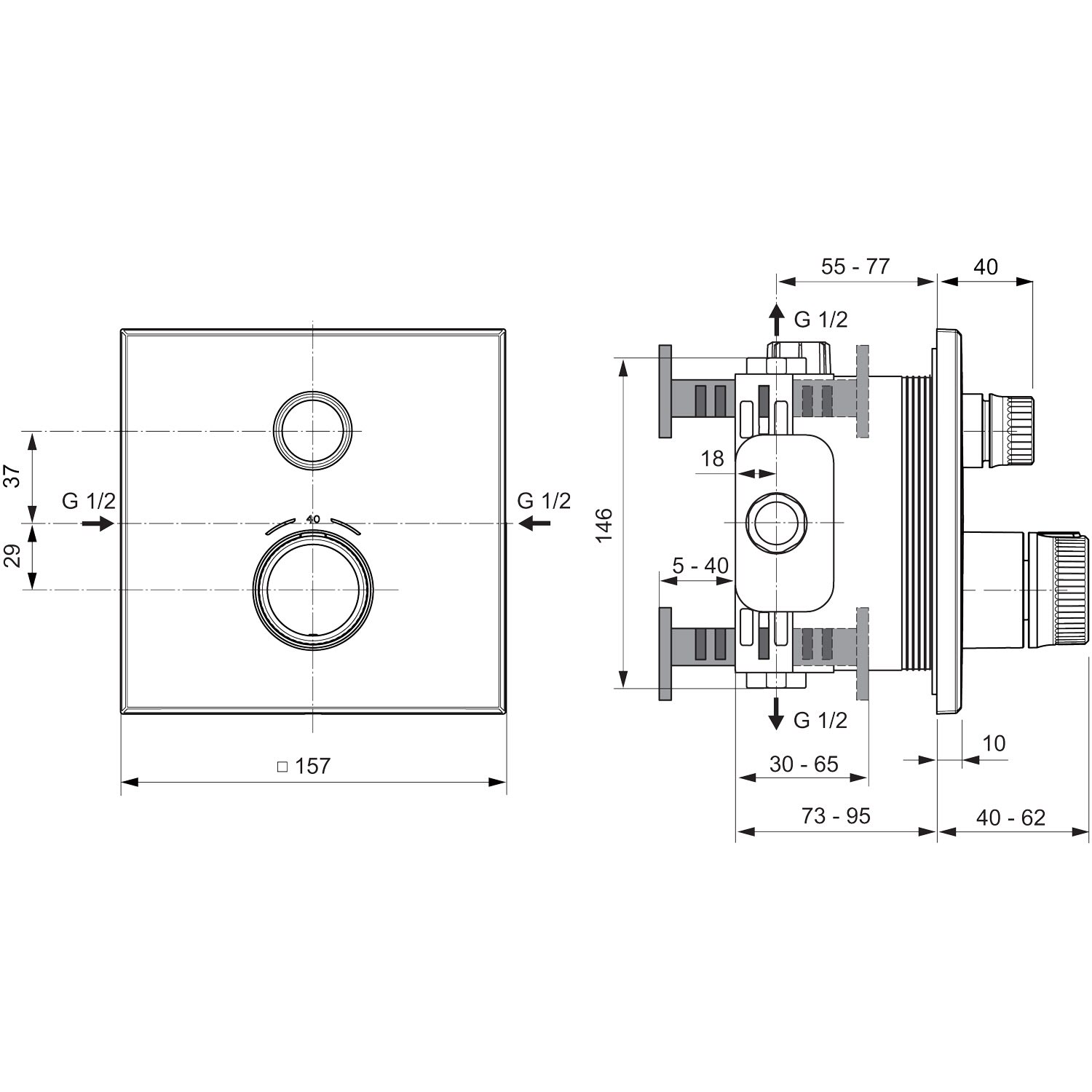 Die Ceratherm Navigo® Brausethermostate wurden mit der bewährten Easy-Box Installationstechnologie von Ideal Standard kombiniert. Der Unterputzkörper EASY-Box bildet die solide Basis in der Wand und ermöglicht eine zuverlässige Montage, die sich flexibel an alle Einbausituationen anpassen lässt. Dank des FAST-FIX-Befestigungskonzepts erfolgt die Montage schnell und einfach - ganz ohne Spezialwerkzeug. Das integrierte DICHT-FIX System bietet einen dreifachen Schutz gegen eindringendes und austretendes Wasser und eliminiert somit das Risiko von Leckagen hinter der Wand.