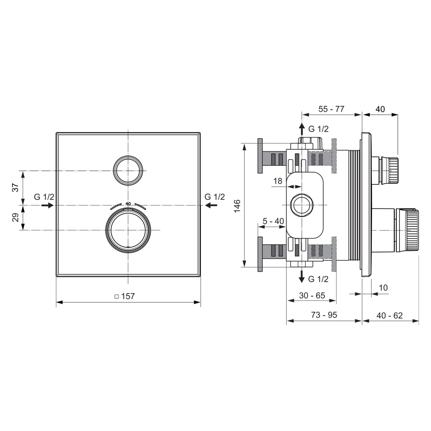 Die Ceratherm Navigo® Brausethermostate wurden mit der bewährten Easy-Box Installationstechnologie von Ideal Standard kombiniert. Der Unterputzkörper EASY-Box bildet die solide Basis in der Wand und ermöglicht eine zuverlässige Montage, die sich flexibel an alle Einbausituationen anpassen lässt. Dank des FAST-FIX-Befestigungskonzepts erfolgt die Montage schnell und einfach - ganz ohne Spezialwerkzeug. Das integrierte DICHT-FIX System bietet einen dreifachen Schutz gegen eindringendes und austretendes Wasser und eliminiert somit das Risiko von Leckagen hinter der Wand.