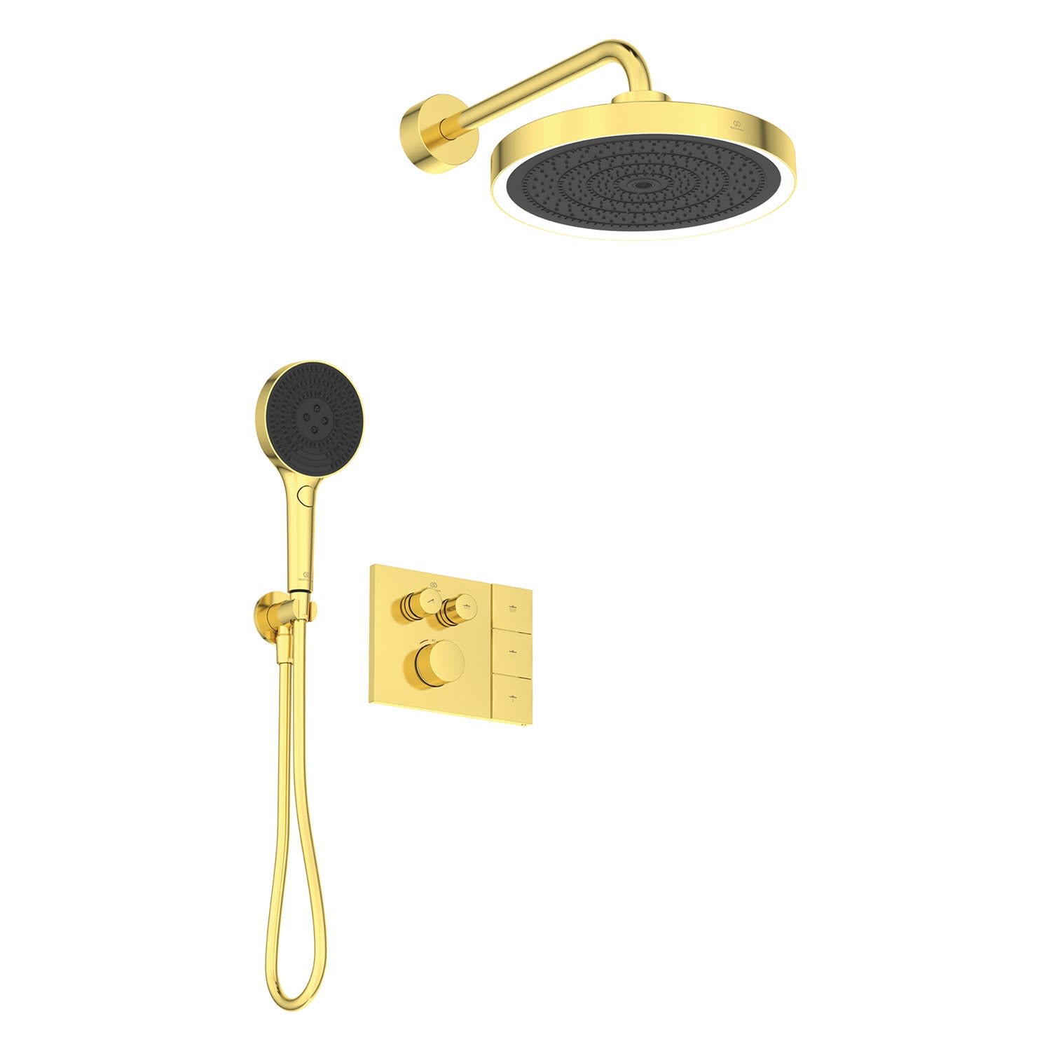 Ideal Standard Duscharmaturen-Set Ceratherm Navigo® UP-Brausethermostat mit Easy-Box, Solos 3-Funktions-Kopf- und Handbrause, LED-Leuchtring