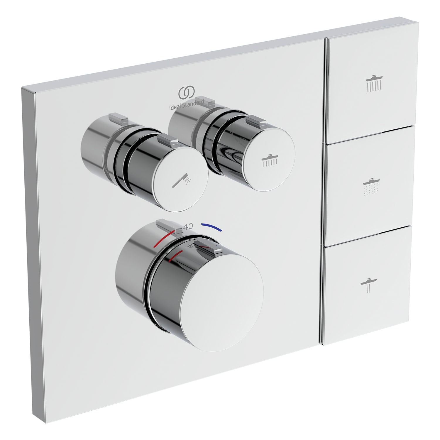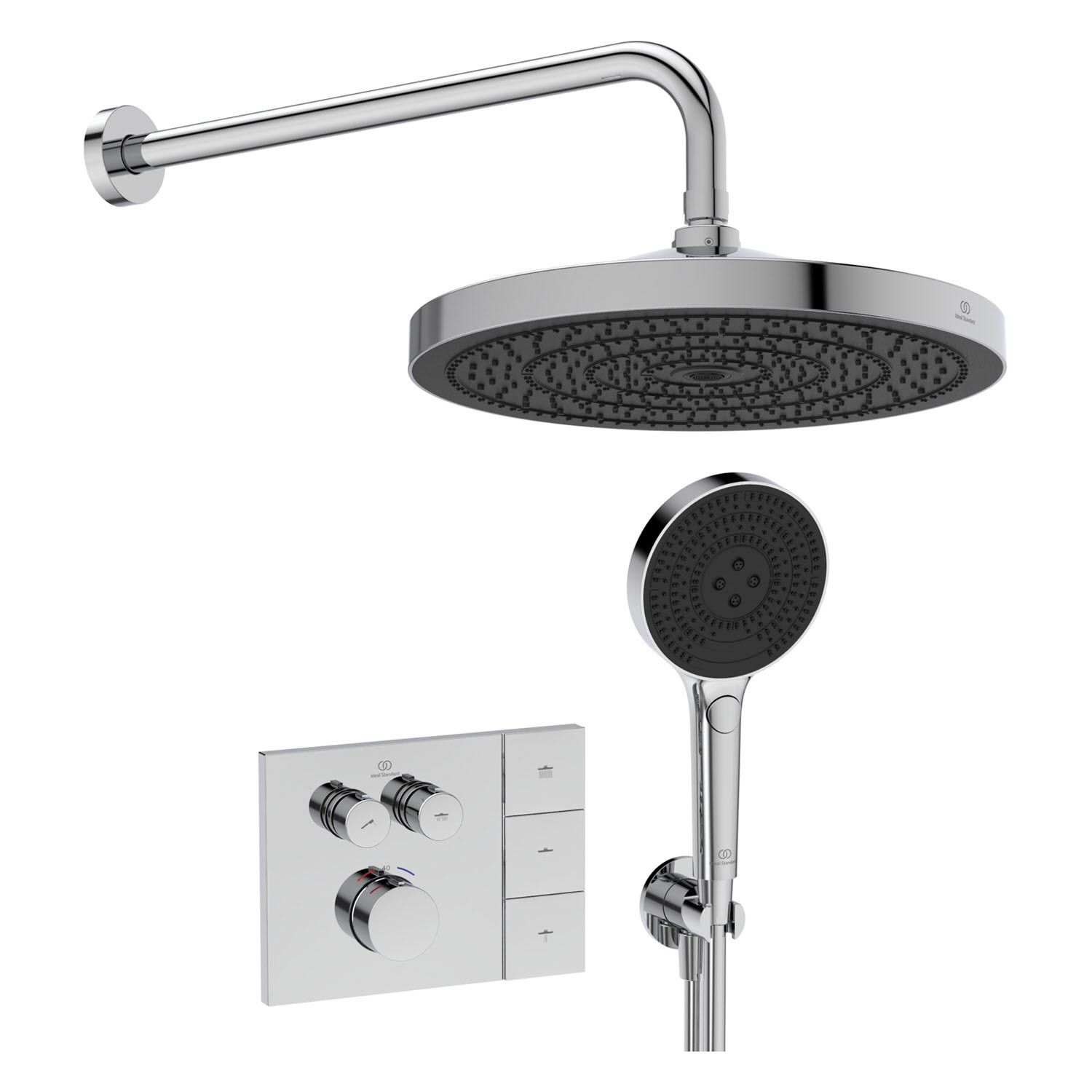 Ideal Standard Duscharmaturen-Set – Ceratherm Navigo® Unterputzthermostat, Solos 3-Funktions-Kopf- und Handbrause