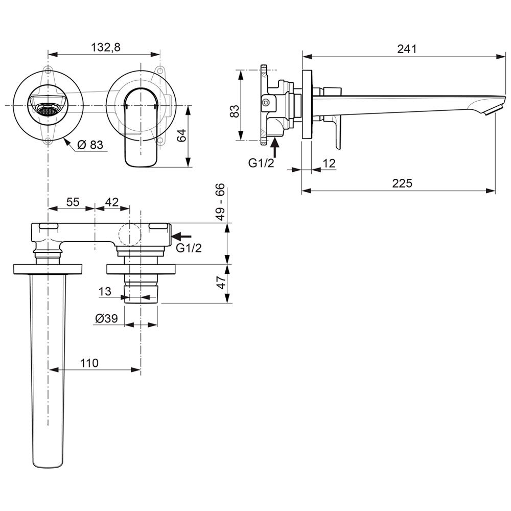 Ideal Standard Connect Air Wand-Waschtischarmatur Bausatz 2, Ausladung 22,5 cm