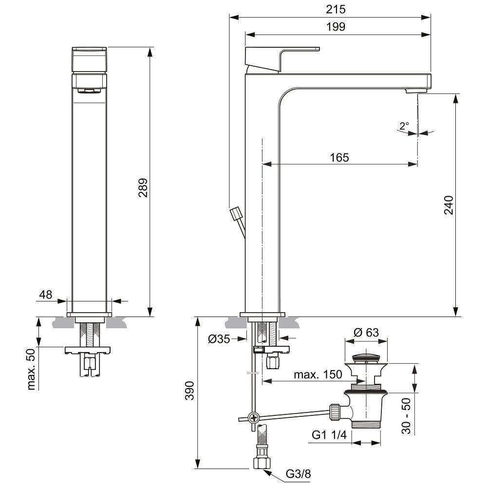 Ideal Standard Edge Waschtischarmatur mit verlängertem Sockel, mit Ablaufgarnitur
