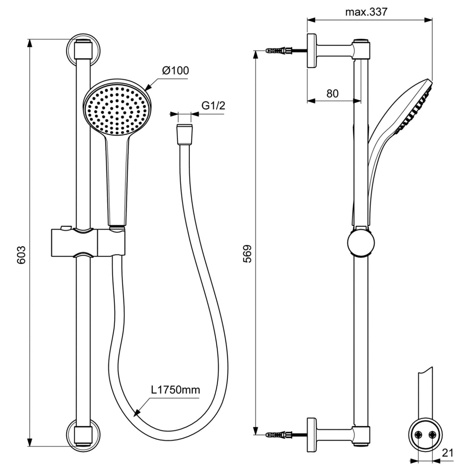 - Brausestange 175 cm lang