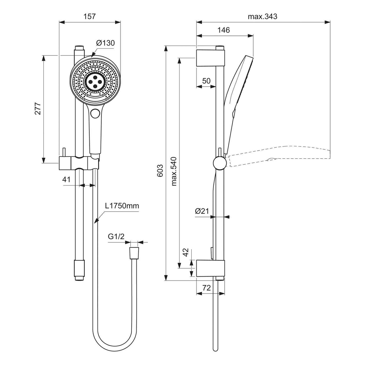 Ideal Standard Idealrain Solos Brausekombination 60 cm mit Handbrause 3 Strahlarten