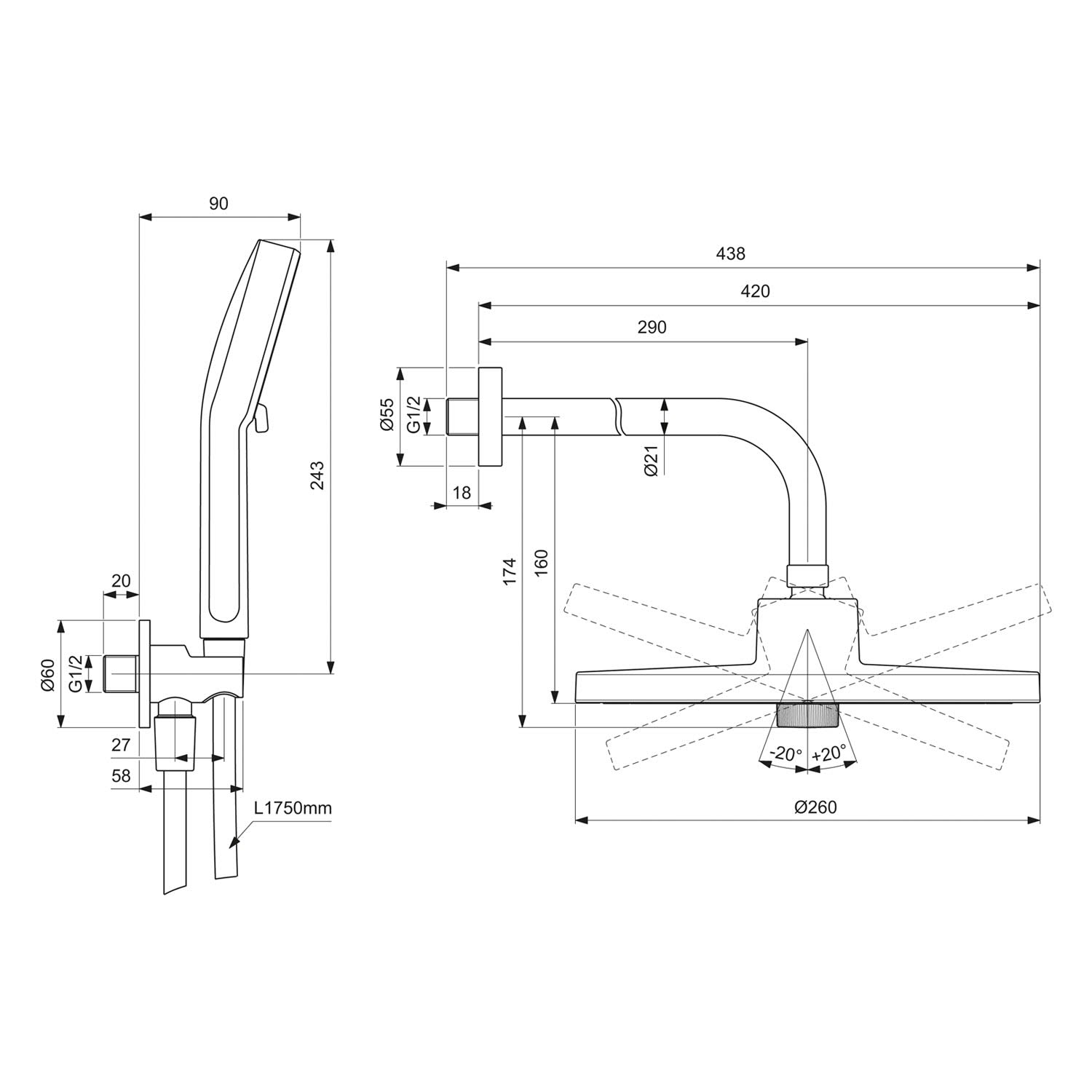 - Brauseschlauchanschluss G1/2