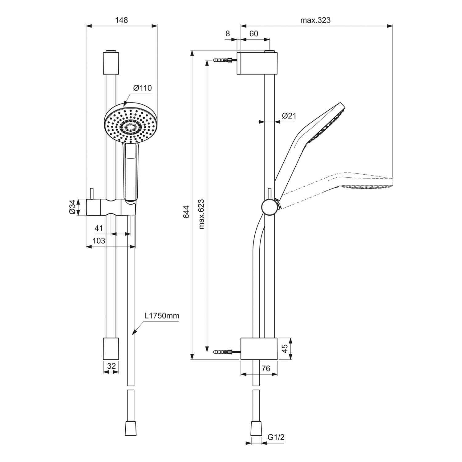 - Brausestange 64,4 cm
