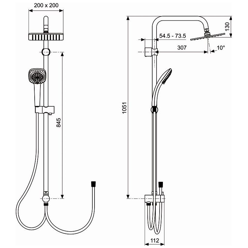 - Ausladung Mitte Brausestange bis Mitte Kopfbrause 30,7 cm