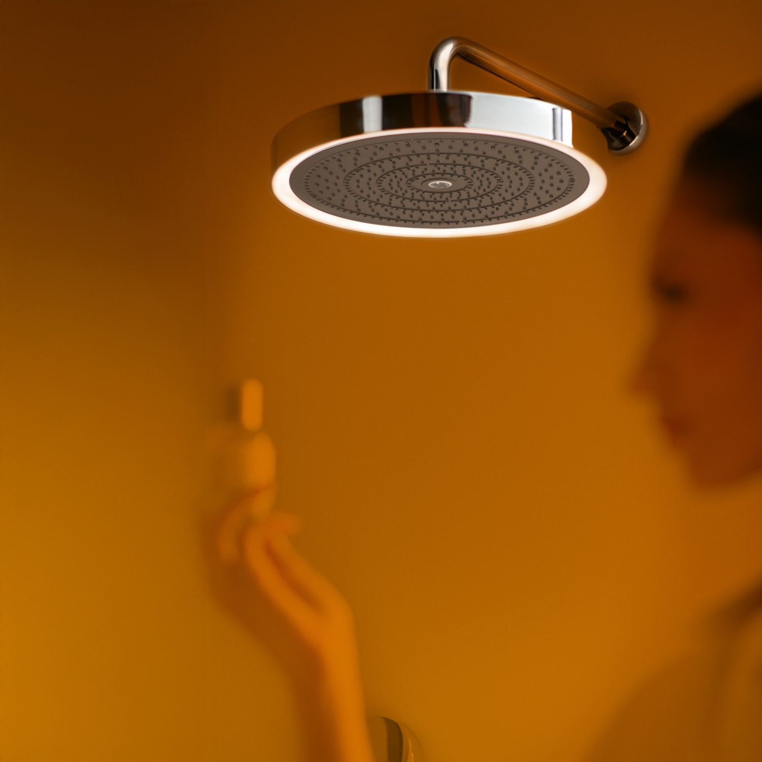 Mit der Solos LED-Kopfbrause wird jede Dusche zur individuell steuerbaren Wellnesszone. Drei Strahlarten, welche sich per Fernbedienung umschalten lassen, garantieren einen unvergleichlichen Duschgenuss. Die Fernbedienung wird ohne Bohren an dem gewünschten Platz in der Dusche platziert. Der LED-Leuchtring wird durch einen Näherungssensor automatisch aktiviert und erstrahlt in weißem Licht. In Verbindung mit einer vorhandenen Zigbee Smart-Home Lösung, lässt sich die Lichtfarbe verändern.
