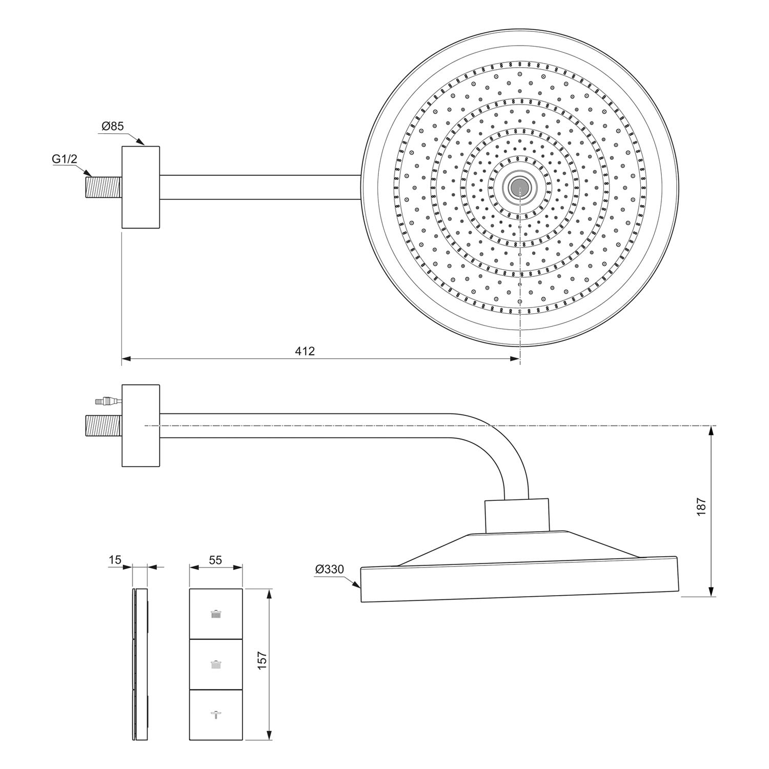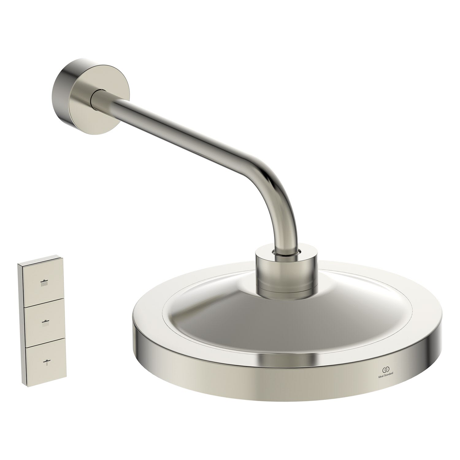 Ideal Standard Idealrain Solos Kopfbrause Ø 33 cm mit LED-Leuchtring, 3 Strahlarten, schaltbar per Fernbedienung und Brausearm für Wandmontage